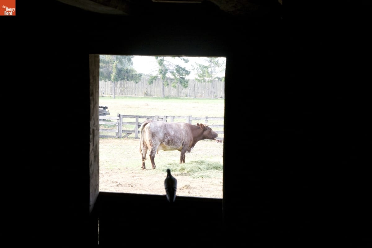 Firestone Farm in Greenfield Village is a "living history" re-creation depicting what life was like on the Ohio farm of Benjamin and Catherine Firestone in 1885. Part of this experience includes seeing farm animals typical of this era. Cows provided meat, milk, butter, and other dairy products that the Firestone family consumed.