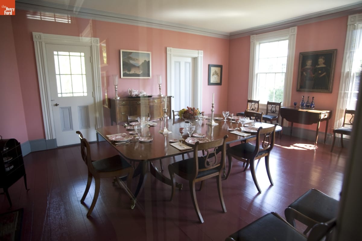 Decorative arts representing the first half of the 19th century fill the rooms of the Robert Frost Home. Henry Ford had this Greek Revival house -- built in the 1830s in Ann Arbor, Michigan -- moved to Greenfield Village in the 1930s. In the early 2000s, the museum staff renamed the building to honor American poet Robert Frost, who lived there in the mid-1920s.