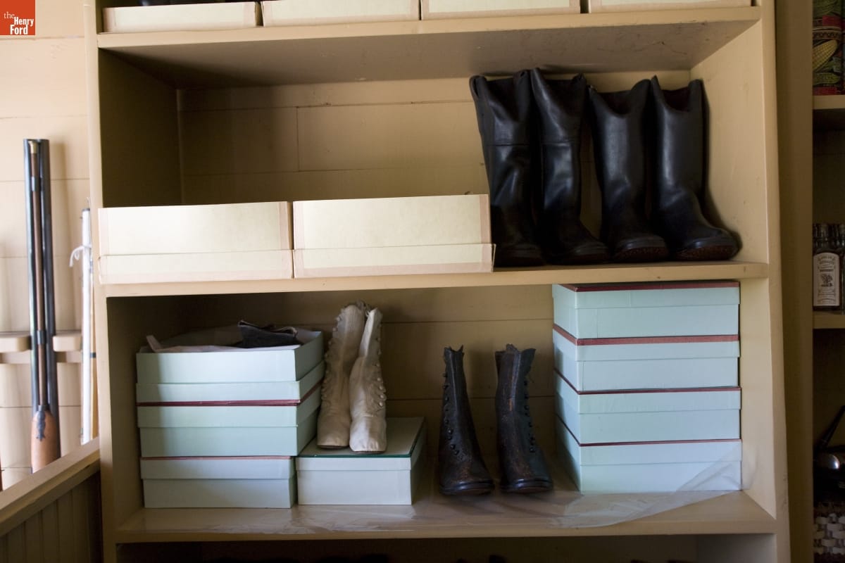This store, originally located in Waterford, Michigan, was the first building Henry Ford brought to Greenfield Village. From 1882 to 1888, storekeeper J.R. Jones sold products like coffee, sugar, fabric, and shoes here. According to a later interview with J.R. Jones, the first "department" he stocked on the left side of the store consisted of boots and shoes.