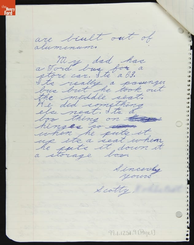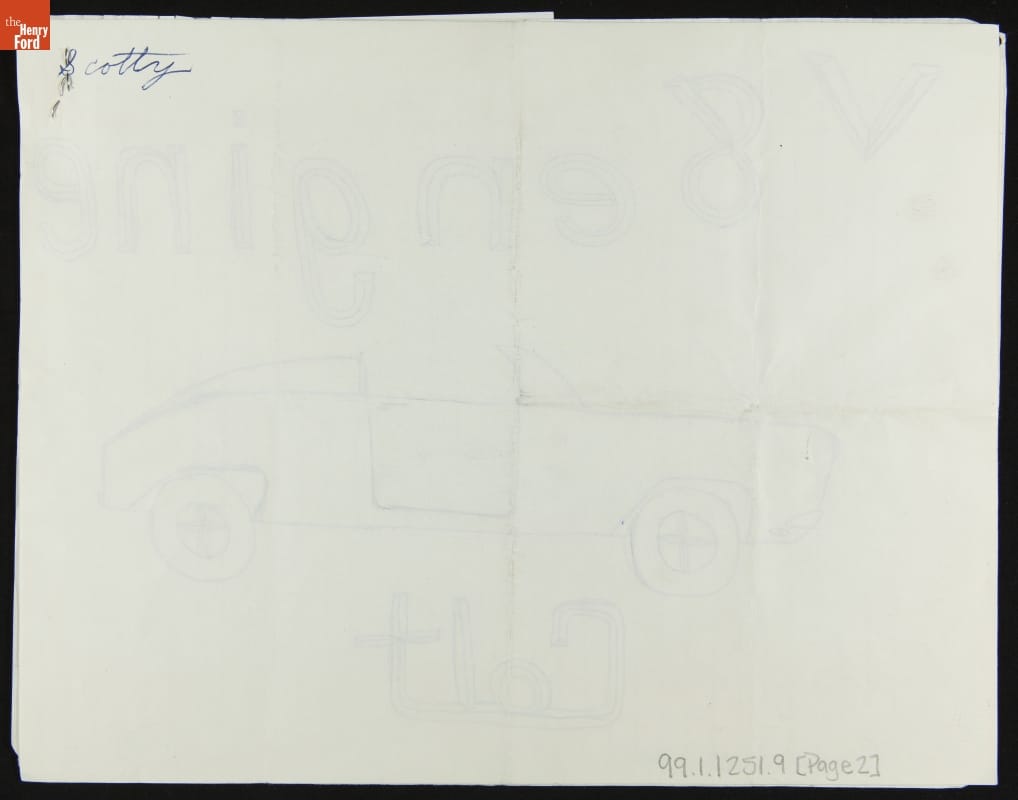 Letter and Design Drawing Sent to Ford Motor Company from Car Enthusiast Scotty, April 1965