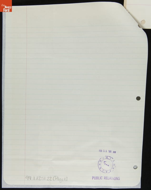 Young automobile enthusiasts occasionally wrote to Ford Motor Company to share thoughts about, and perhaps even drawings of, their favorite Ford cars. In reply, correspondents usually received a letter from Ford's public relations department, along with brochures or press materials about the company's production vehicles and concept cars.