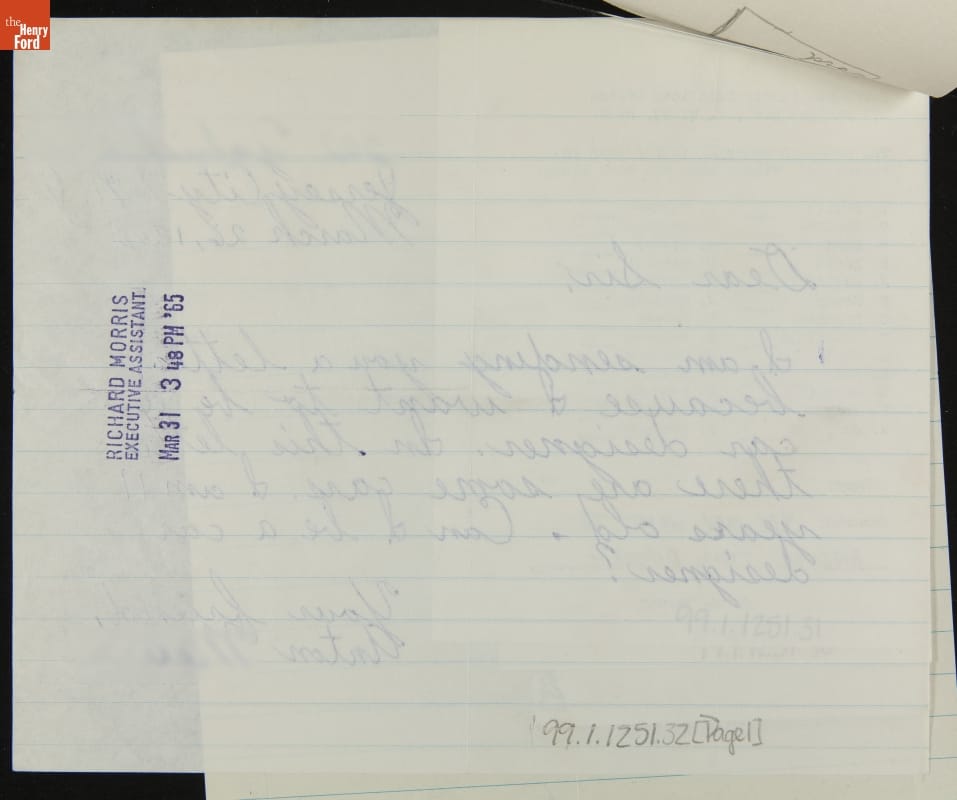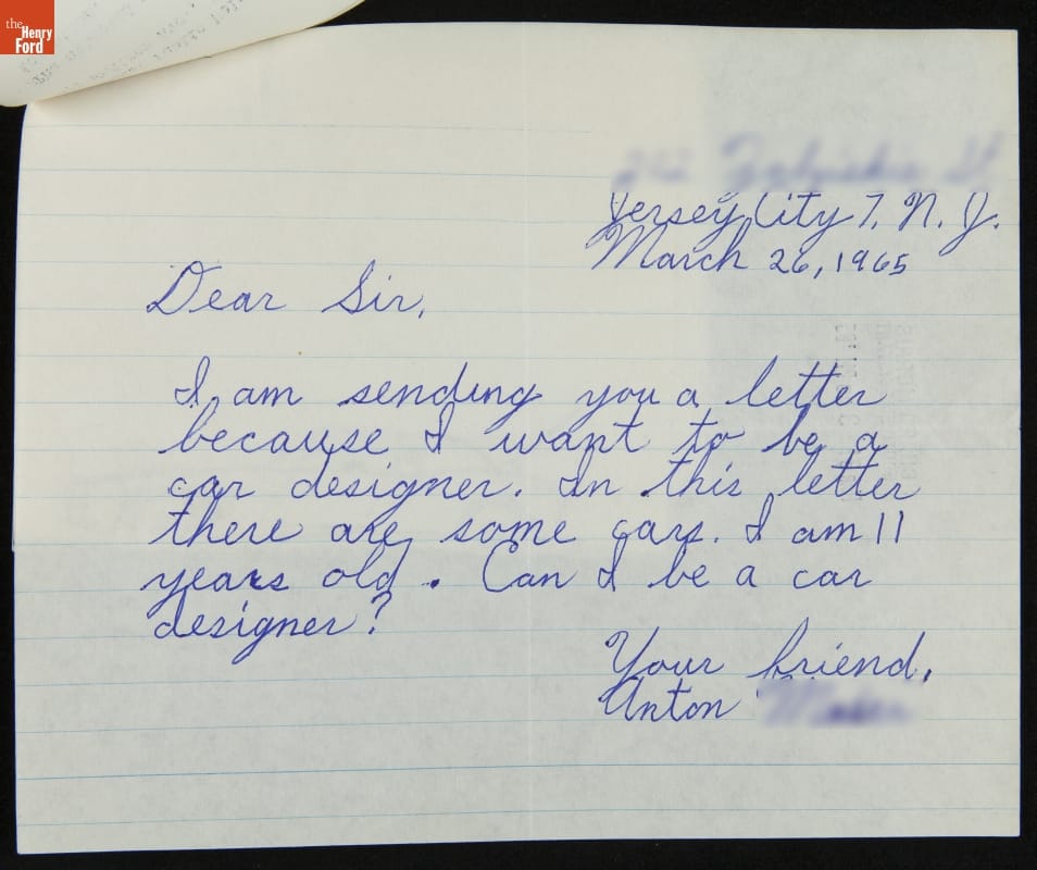Young automobile enthusiasts occasionally wrote to Ford Motor Company to share thoughts about, and perhaps even drawings of, their favorite Ford cars. In reply, correspondents usually received a letter from Ford's public relations department, along with brochures or press materials about the company's production vehicles and concept cars.