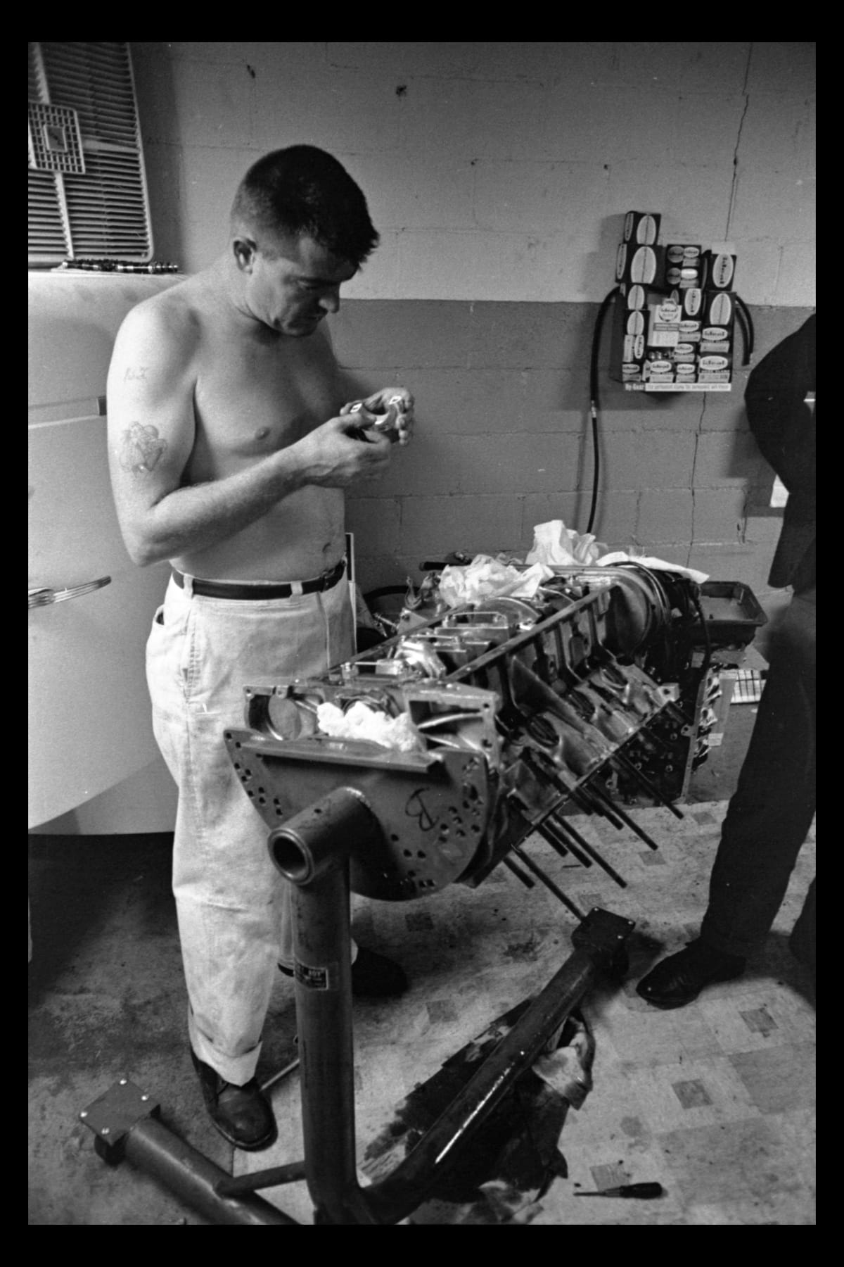 With sponsorship from Los Angeles-based Harvey Aluminum, Mickey Thompson took three cars to the 1962 Indianapolis 500. All were powered by Buick V-8 engines mounted in the rear -- an unconventional layout at the time. Only Dan Gurney, driving the #34 car, managed to qualify. Gurney was in ninth place when a leaking transaxle ended his race on lap 92.