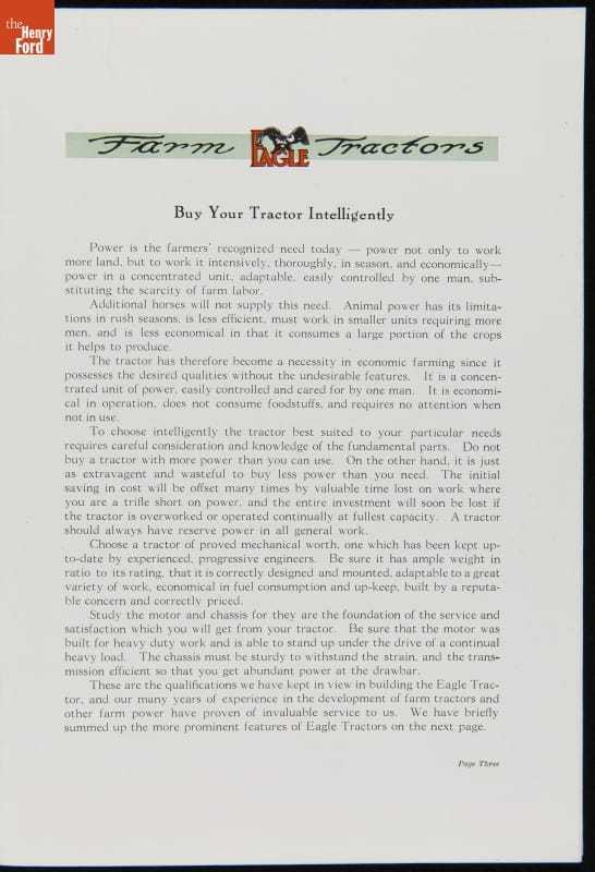 "Eagle Farm Tractors," circa 1918