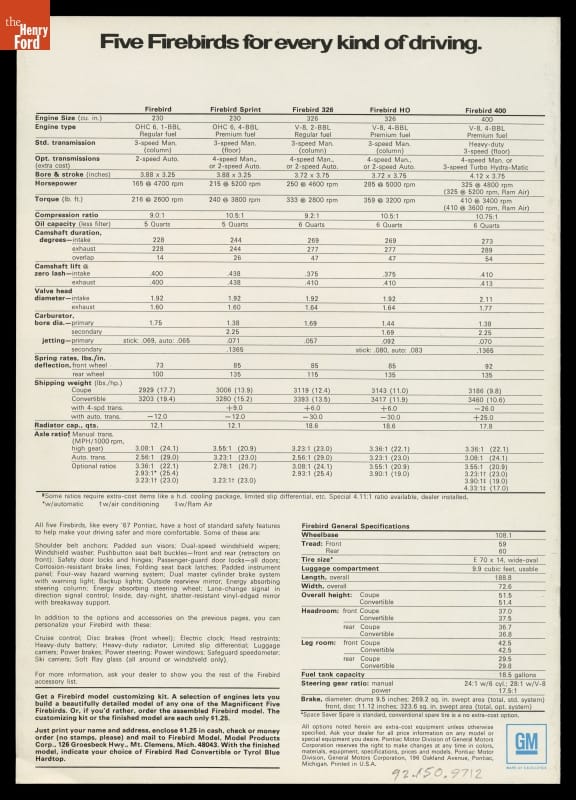 1967 Pontiac Sales Brochure, "The Magnificent Five are here/the Pontiac Firebirds"