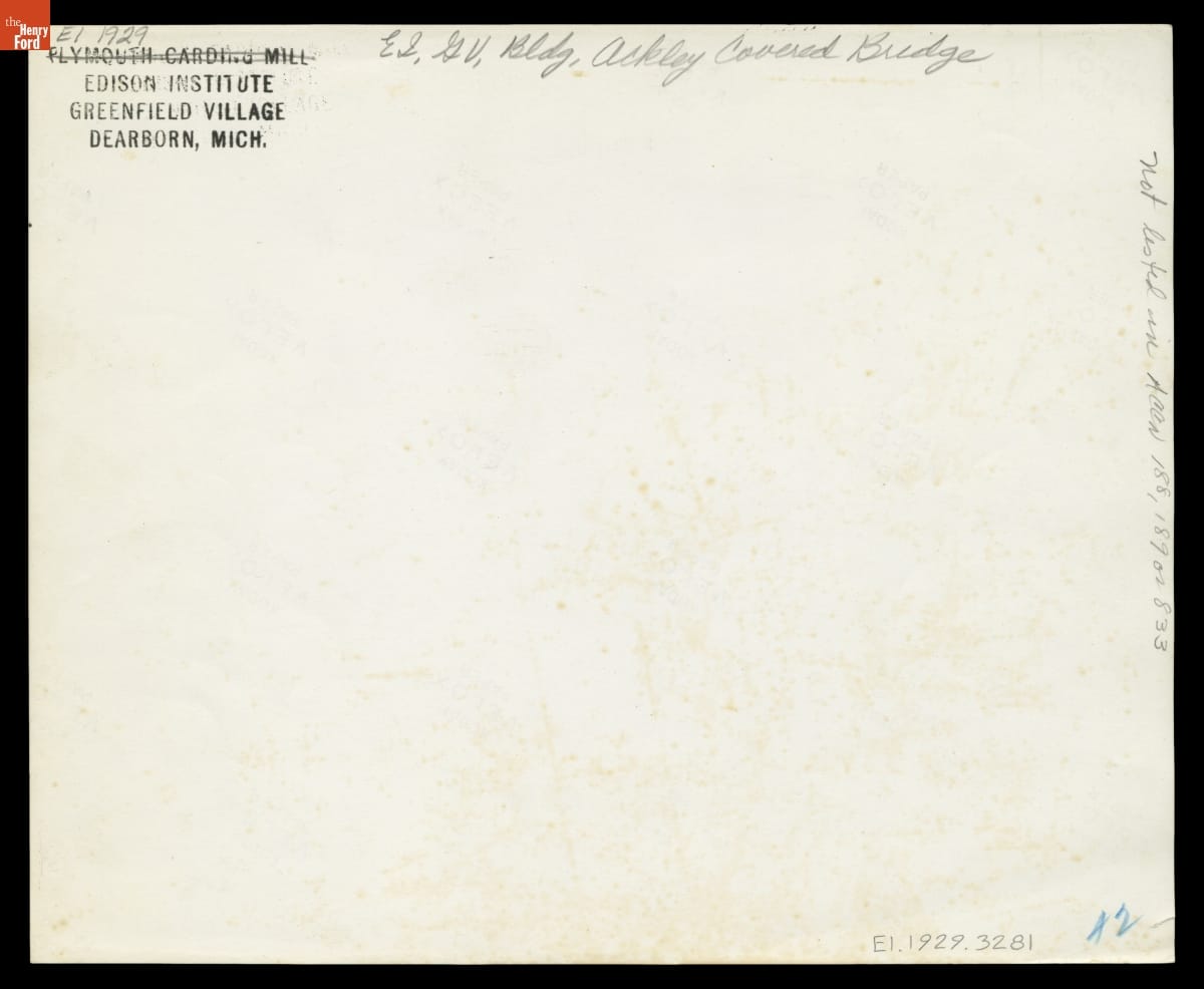 In addition to lending some charm, covering a bridge protects its wooden truss work from weather, extending the structure's service life. Joshua Ackley and Daniel Clouse built the Ackley Covered Bridge in 1832, across Wheeling Creek in southwestern Pennsylvania. Henry Ford acquired the bridge in 1937, when it was scheduled to be torn down, and moved it to Greenfield Village.