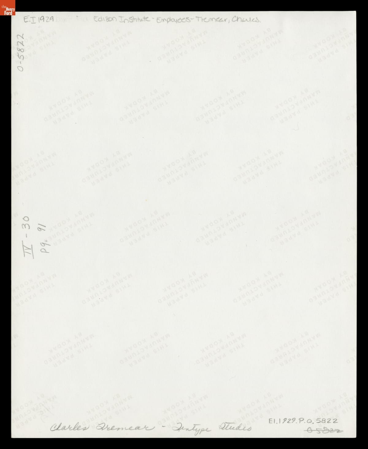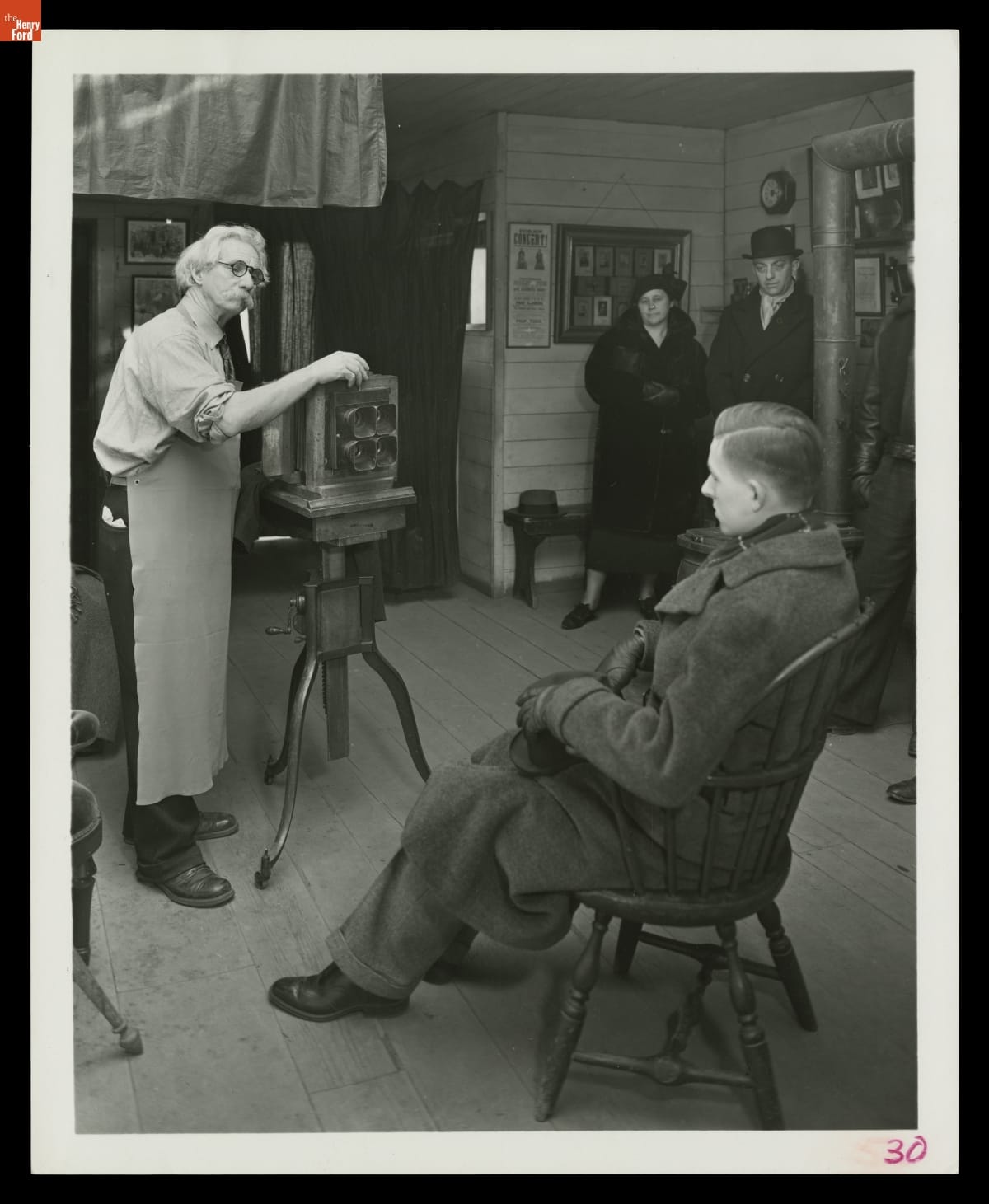 Charles Tremear Working in the Tintype Studio in Greenfield Village, 1929-1943