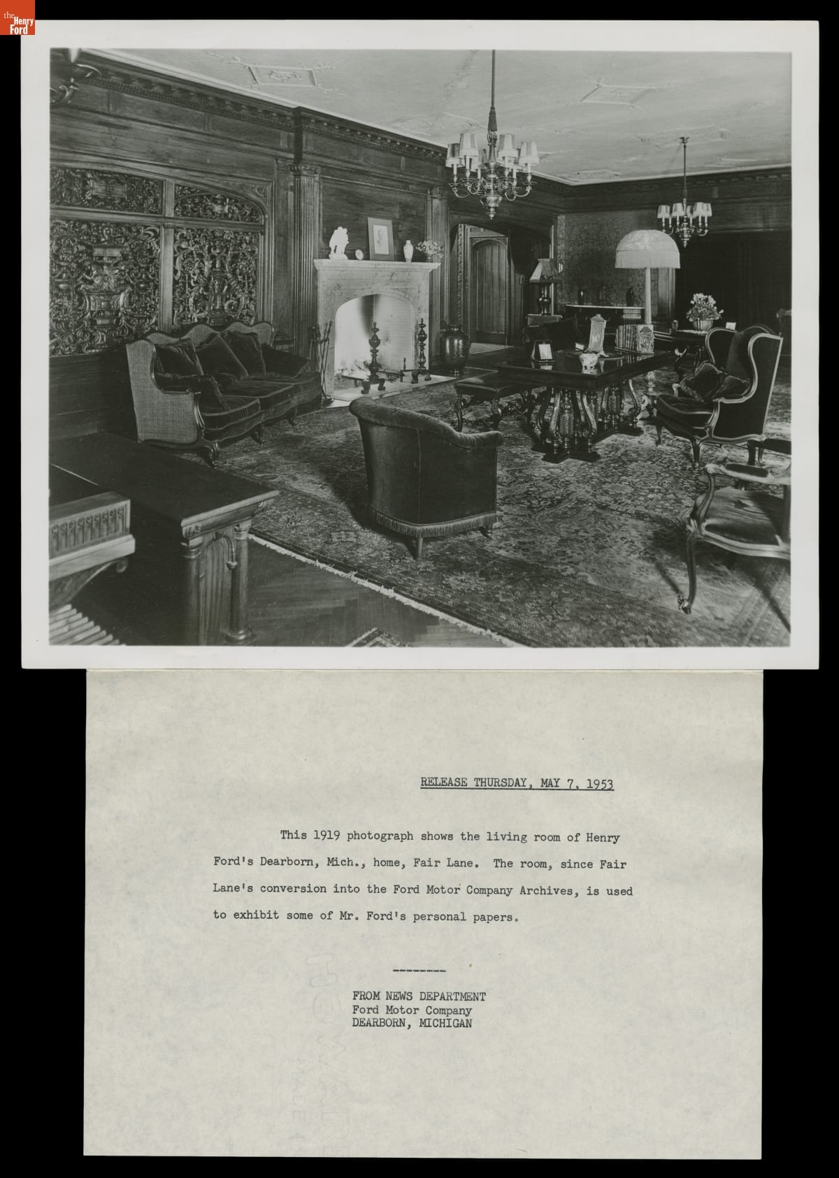 Living Room at Fair Lane, Home of Henry Ford, 1919