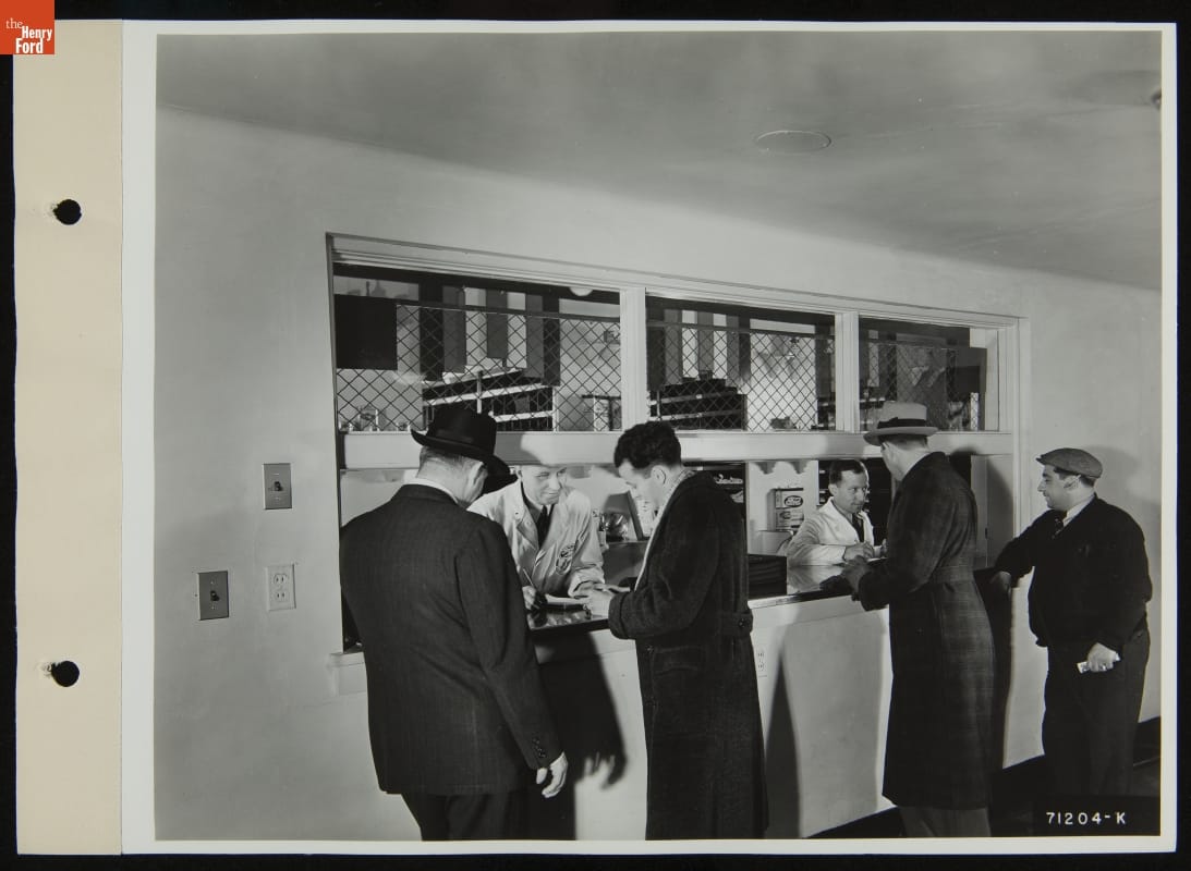 Customers at Service Counter, Robert W. Ford Dealership, Michigan Avenue, Dearborn, Michigan, December 1938
