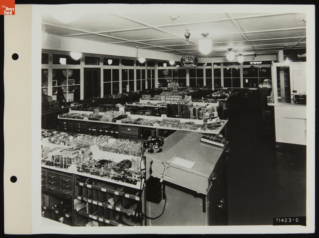 Open Parts Bins, Illustration for Ford Service Merchandising Bulletin, February 1939