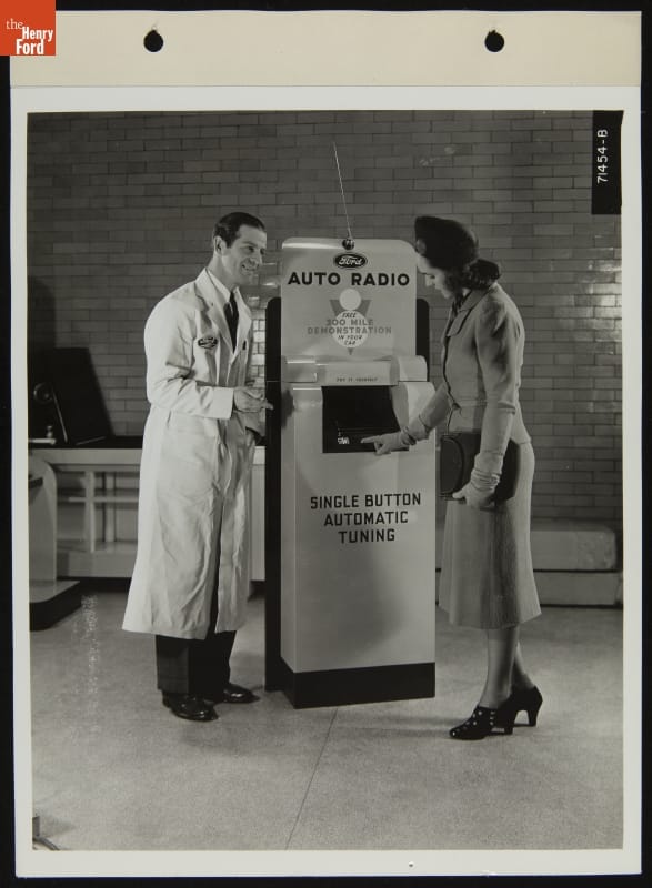 Attendant Shows the Ford Auto Radio Display to a Customer, February 1939