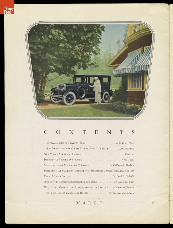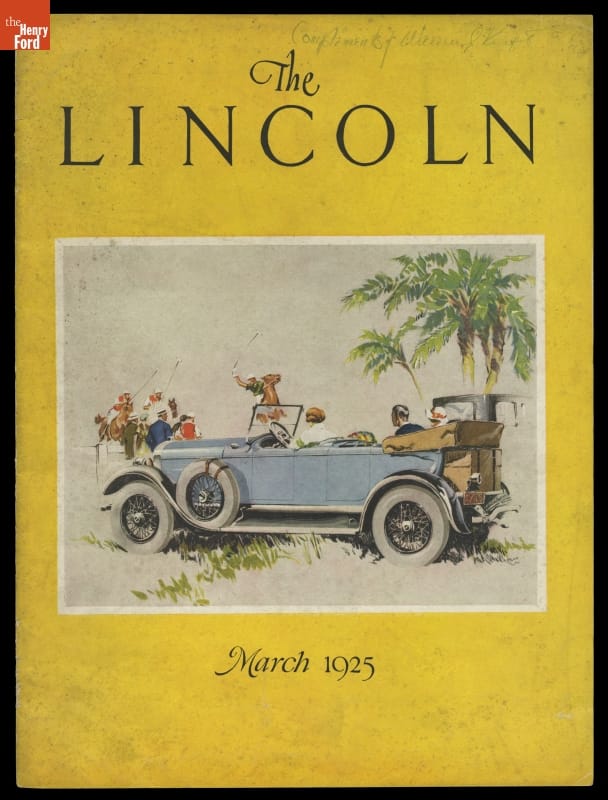 Palm trees and polo provide an appropriate backdrop for a Model L touring car on the cover of the March 1925 issue of The Lincoln, Lincoln Motor Company's promotional magazine. The seven-passenger touring body style was priced at $4,000 that year. Total 1925 calendar year production for Lincoln was 8,451 units.