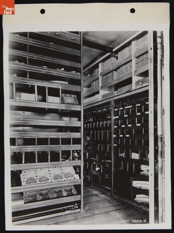 Service Station Parts Stockroom, Illustration in May 1939 Ford Merchandising Bulletin