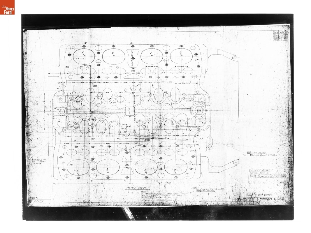 Drawing, "Cylinder Block, Sheet #1," Ford V-8 Engine, July 8, 1935