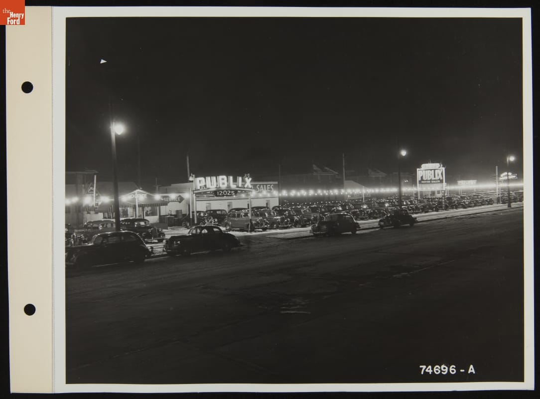 Night View of Publix Motor Sales, Used Car Lot, December 1940