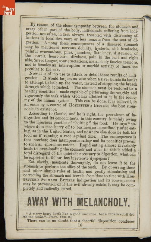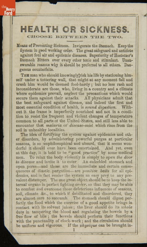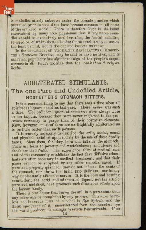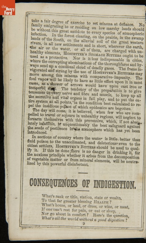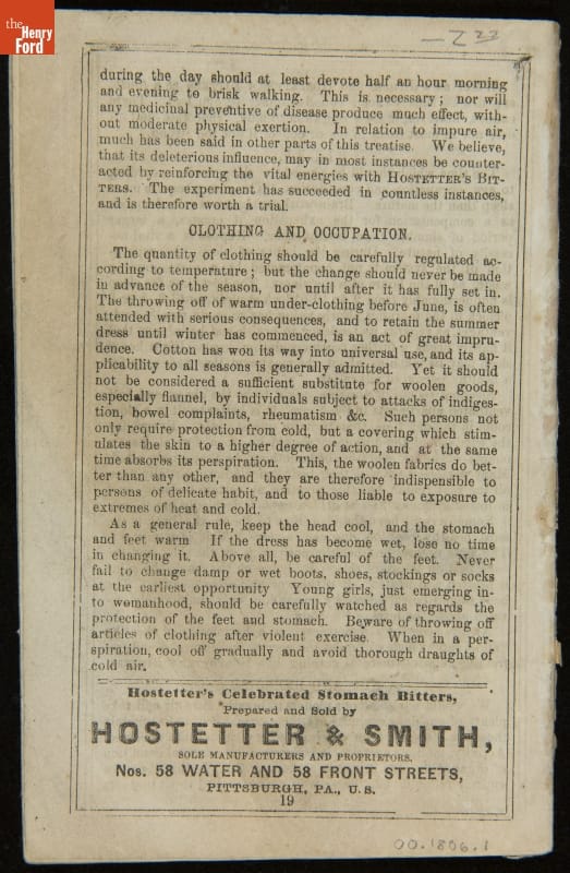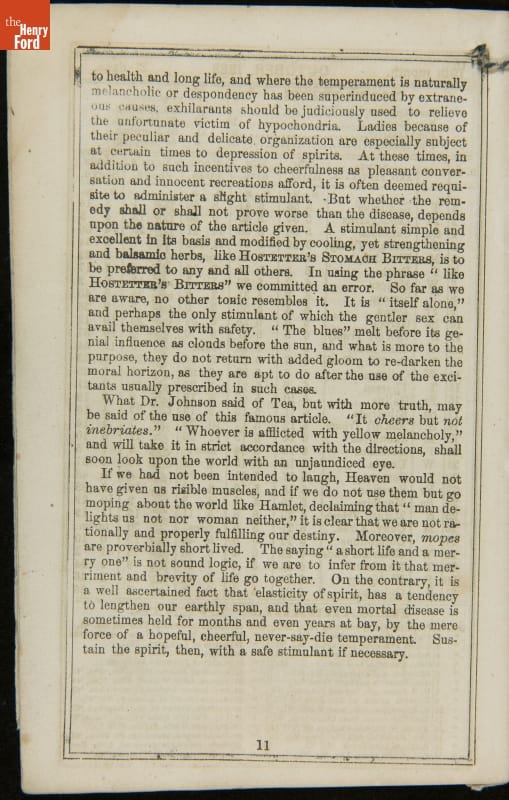Almanacs contained practical information about the coming year. Readers normally found a calendar, weather predictions, tide schedules, and information related to astronomical events, agriculture, health, politics and other matters. Interspersed were jokes and witty sayings. Beginning in the late 1800s, makers of Hostetter's Bitters -- a self-proclaimed cure-all with high alcohol content -- published almanacs to entice the public to buy their products.