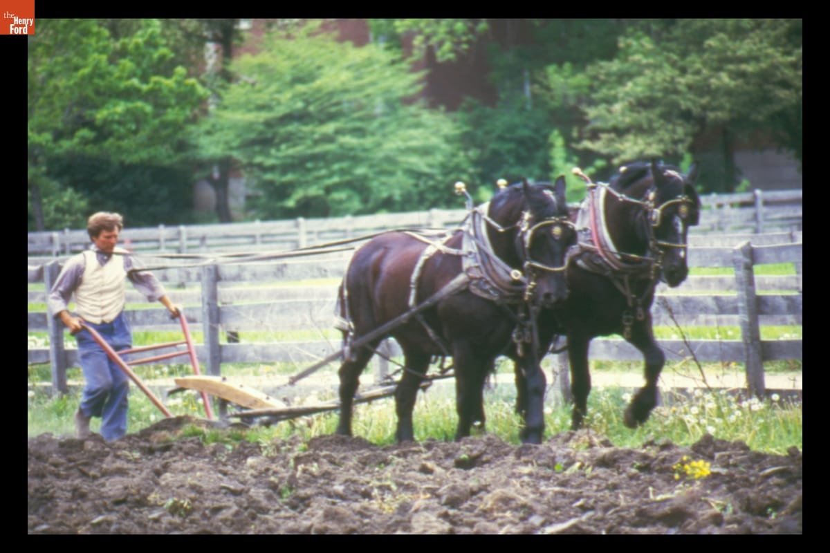 Plowing Fields at Firestone Farm in Greenfield Village, 1986