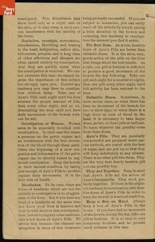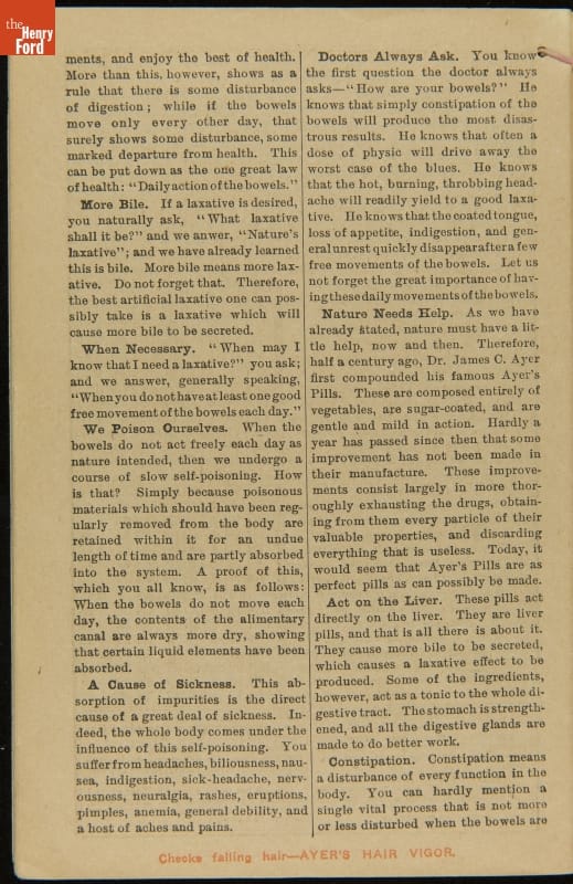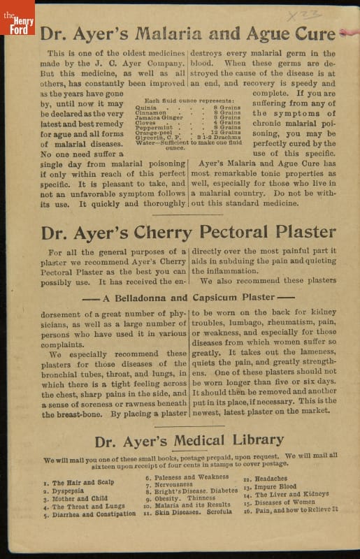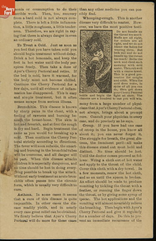 Published by Dr. J.C. Ayer & Co., Lowell, Massachusetts. Distributed by W.J. Trombly, Fairfax, Vermont.