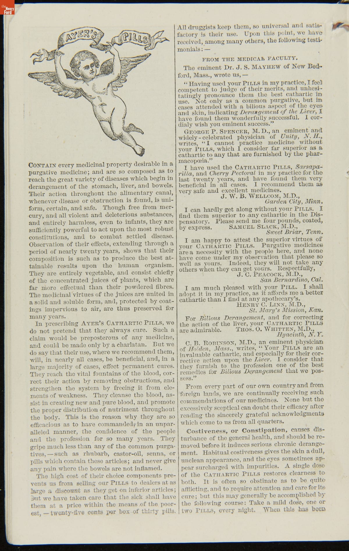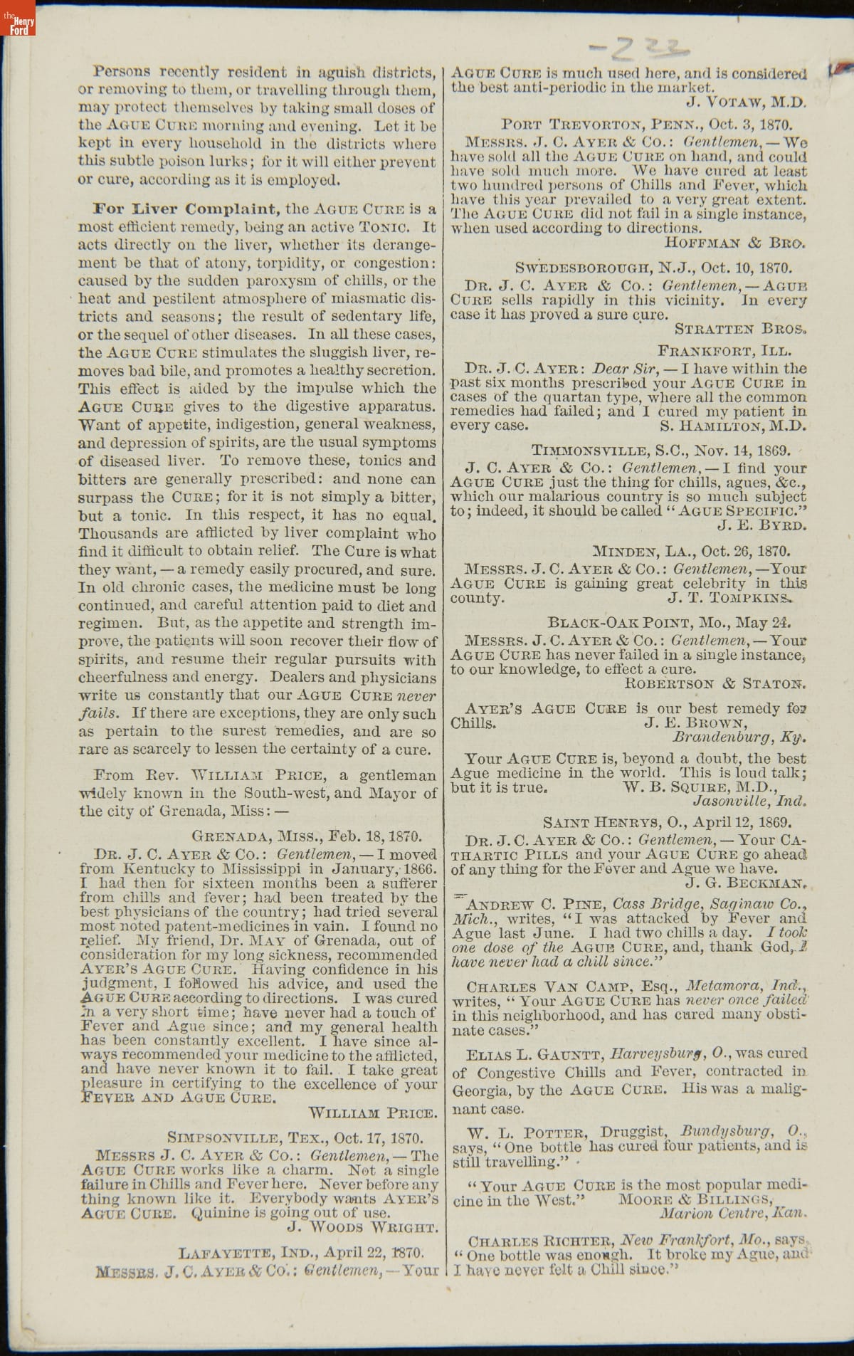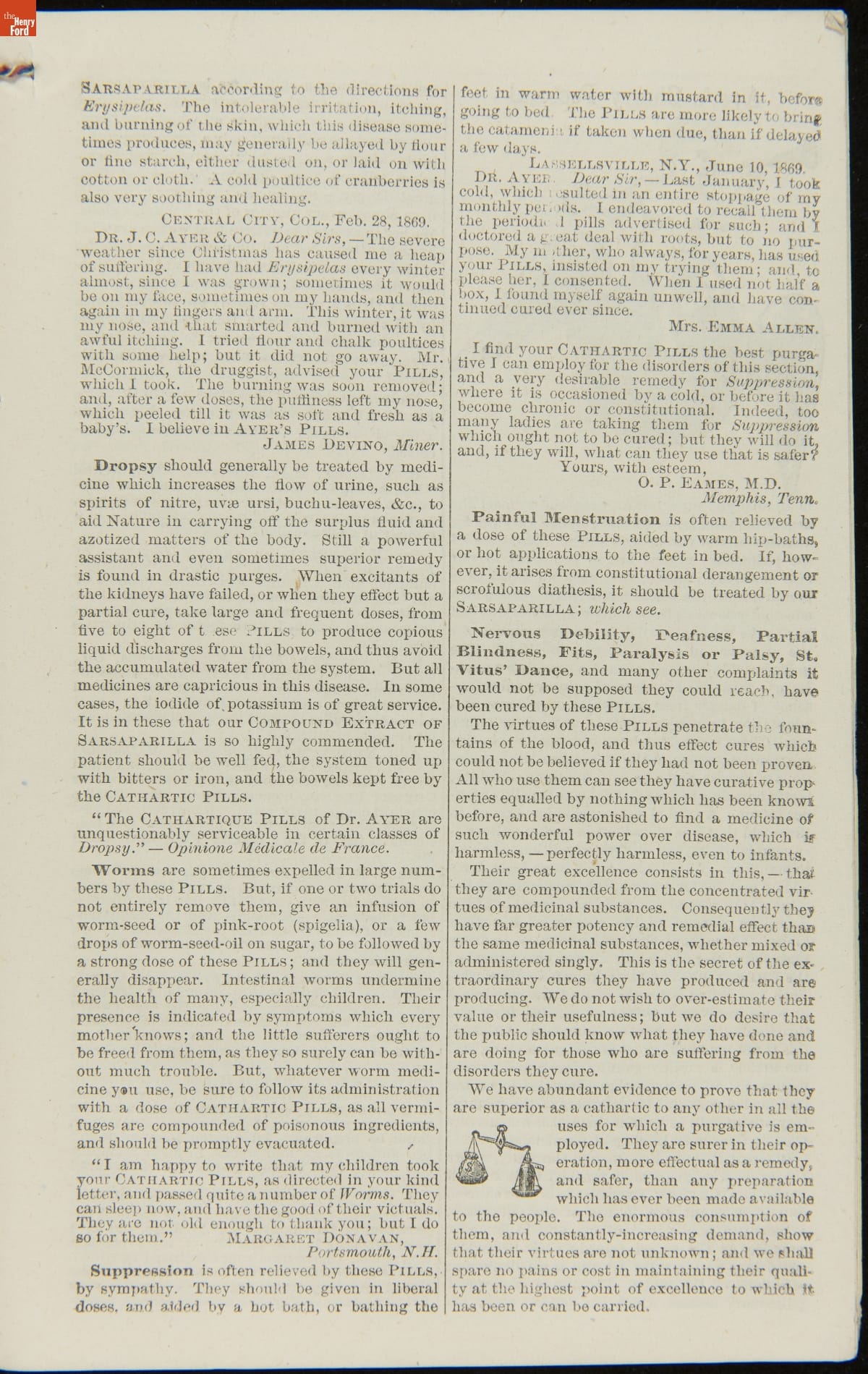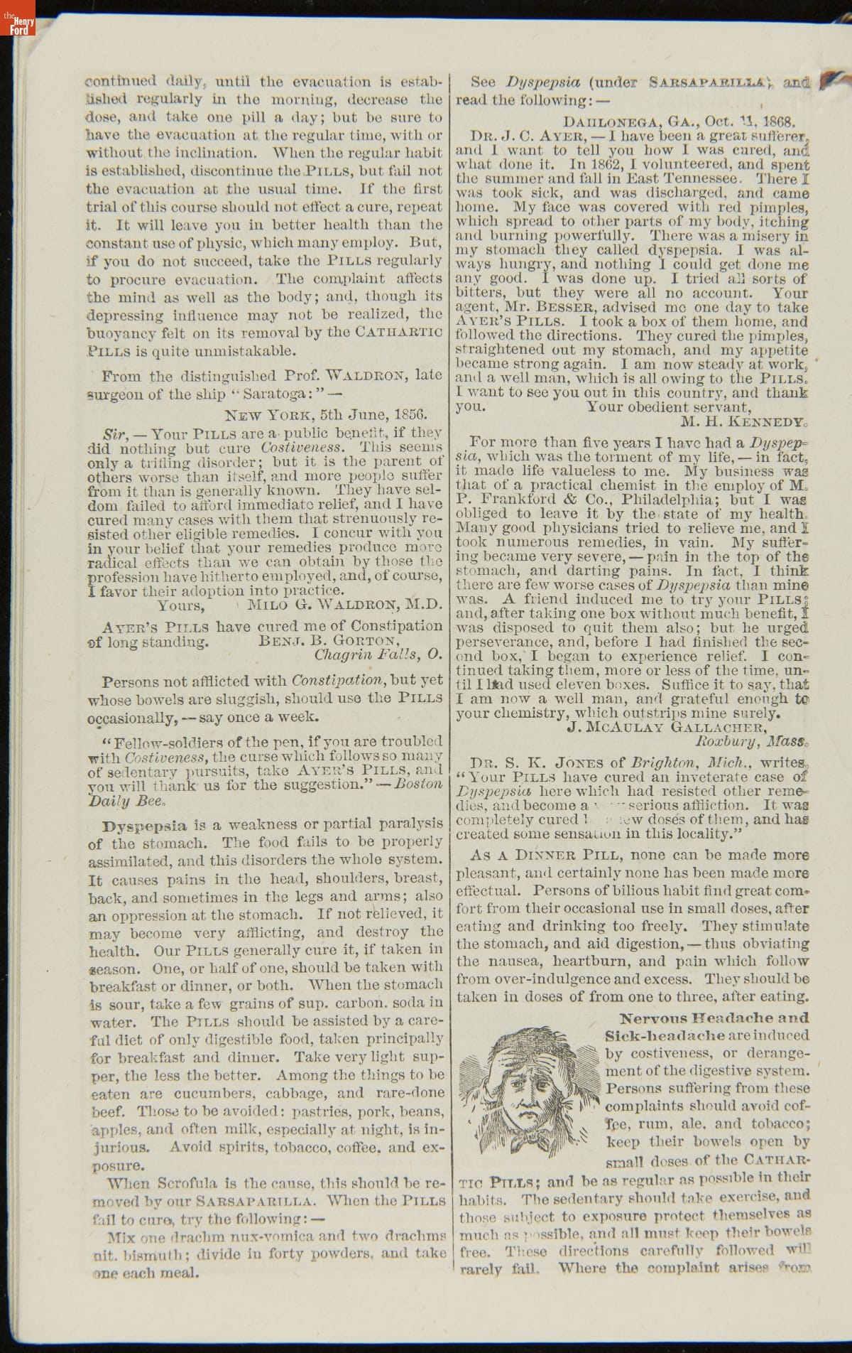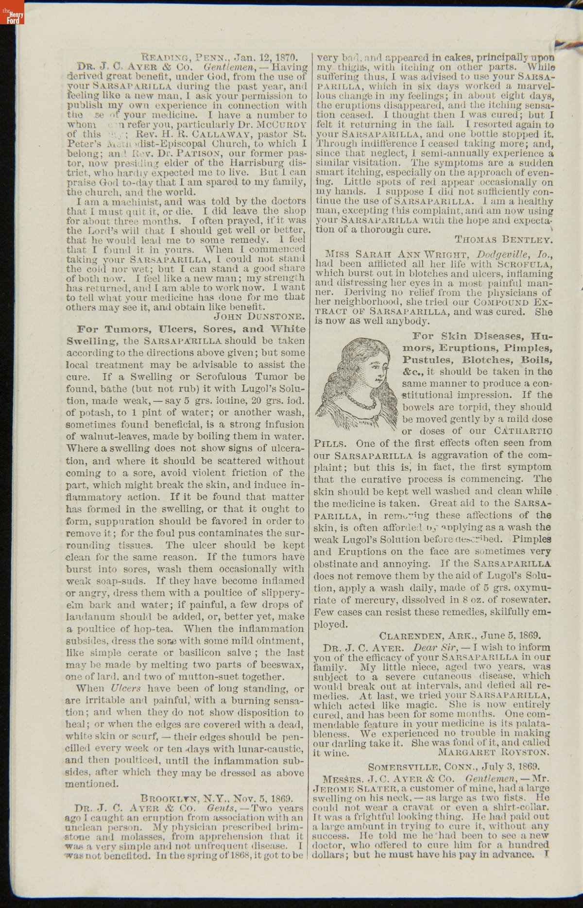 Published by Dr. J.C. Ayer & Co., Lowell, Massachusetts. Distributed by Dr. J. Riddler, Jefferson City, Missouri.