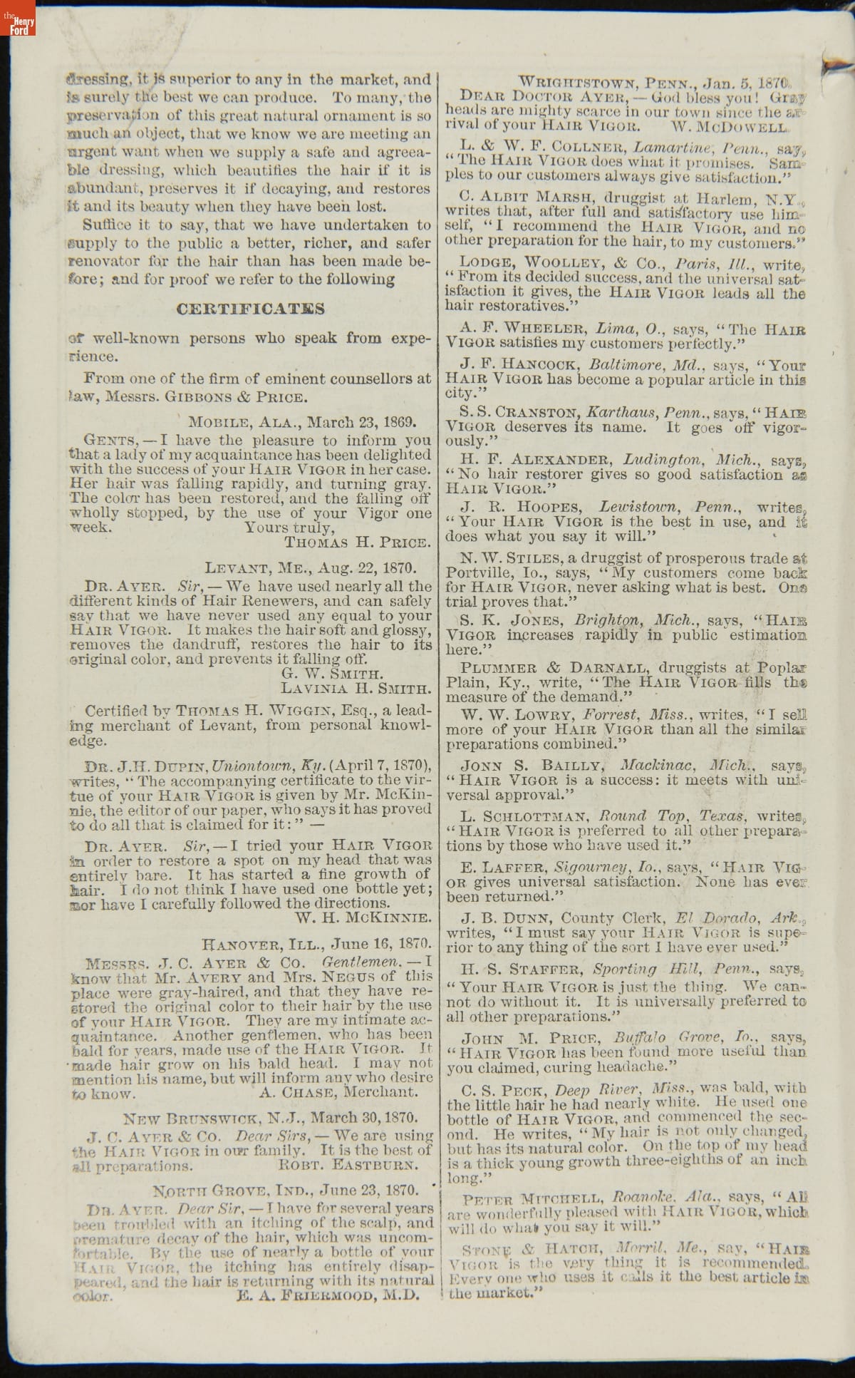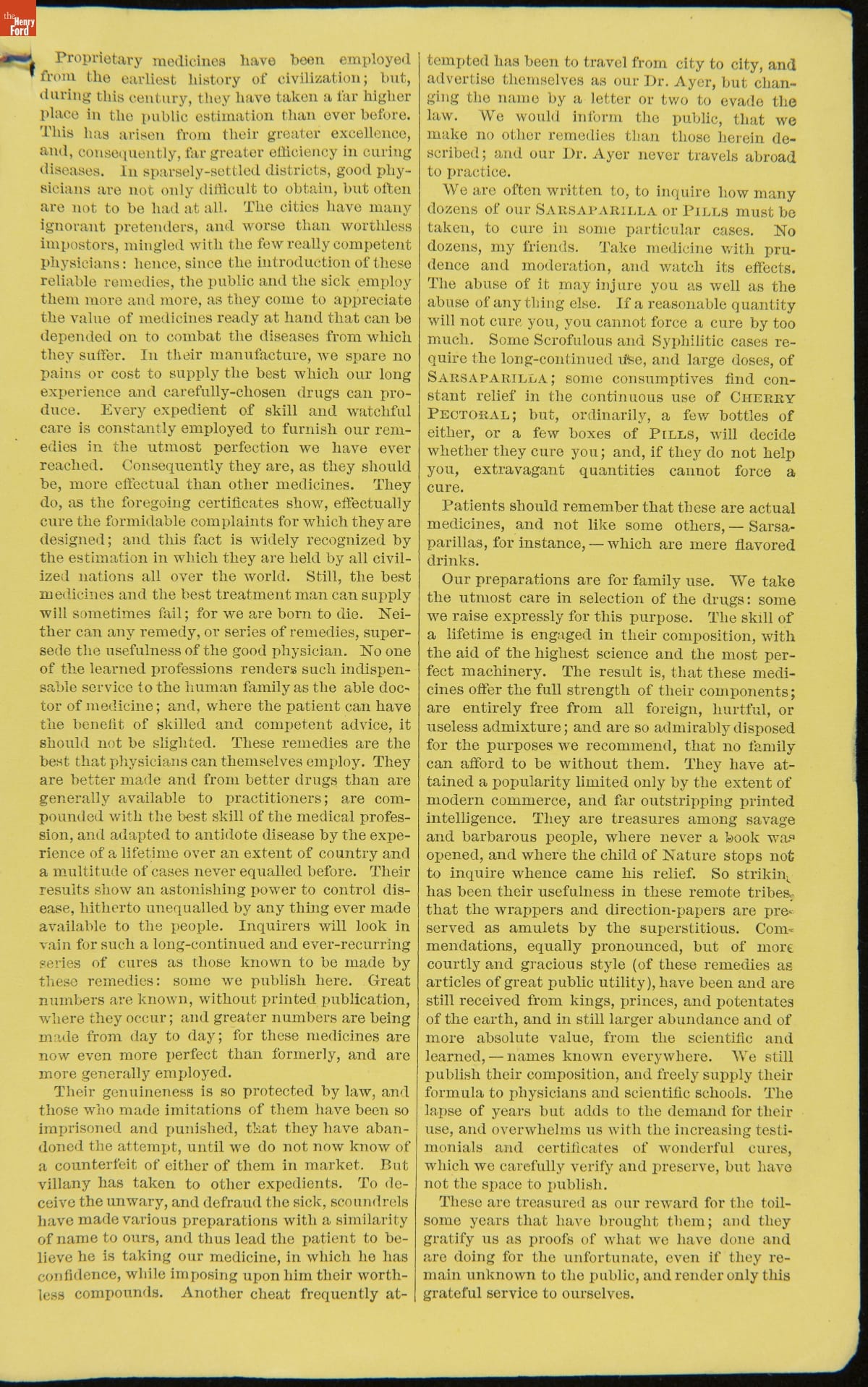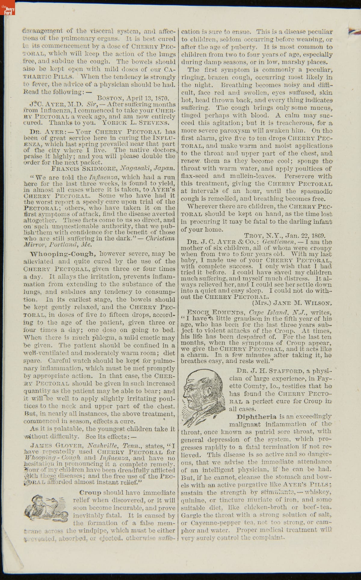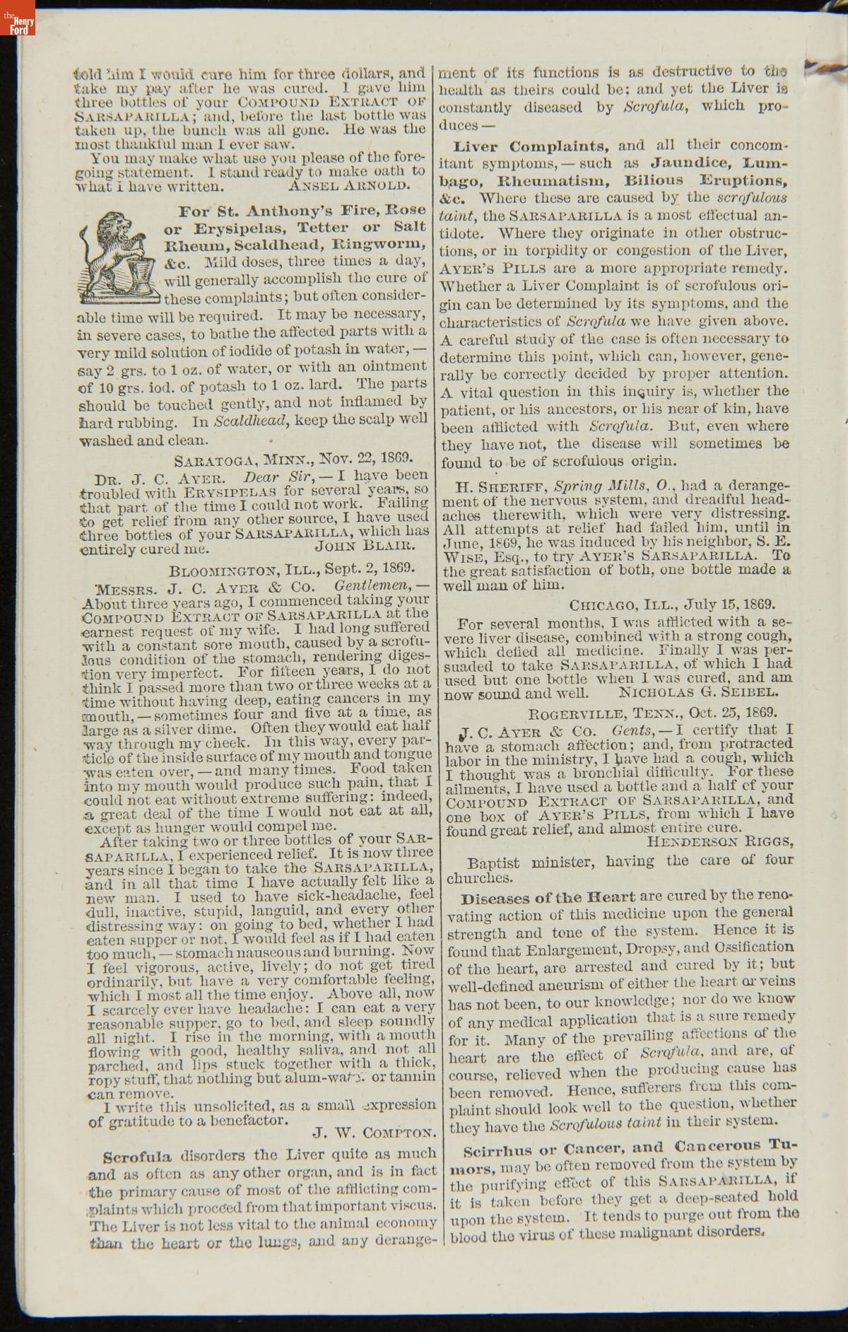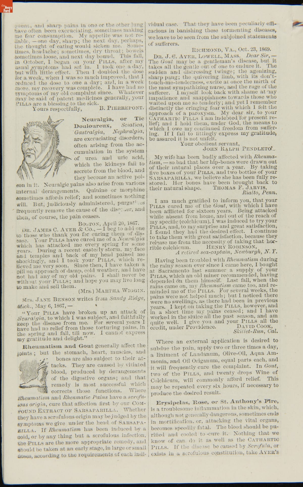 Published by Dr. J.C. Ayer & Co., Lowell, Massachusetts. Distributed by Dr. J. Riddler, Jefferson City, Missouri.