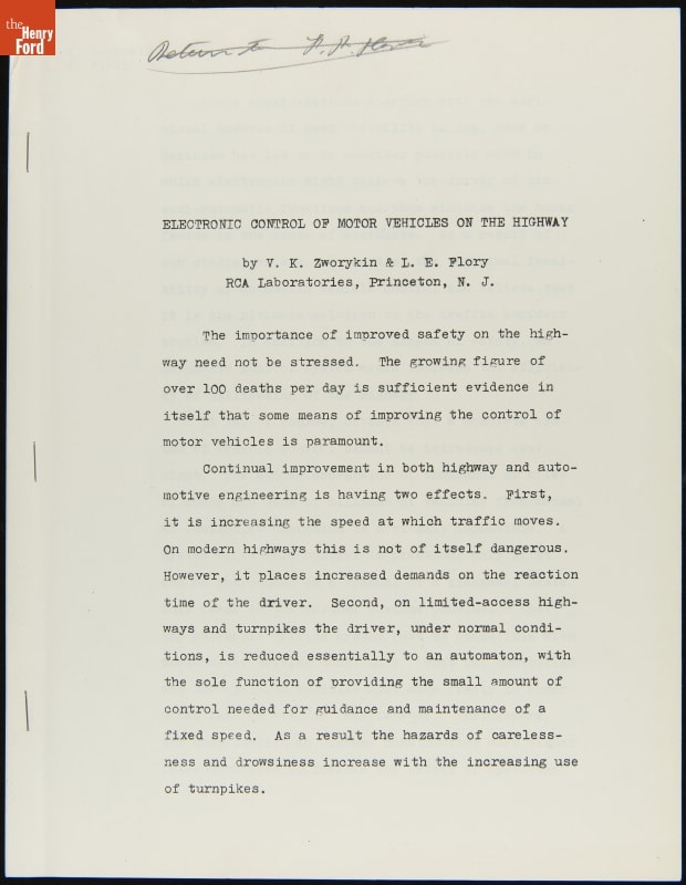"Electronic Control of Motor Vehicles on the Highway," 1957-1958