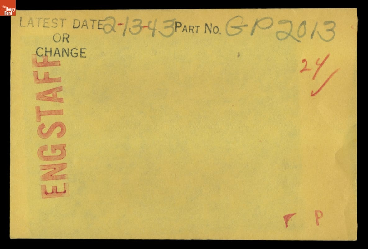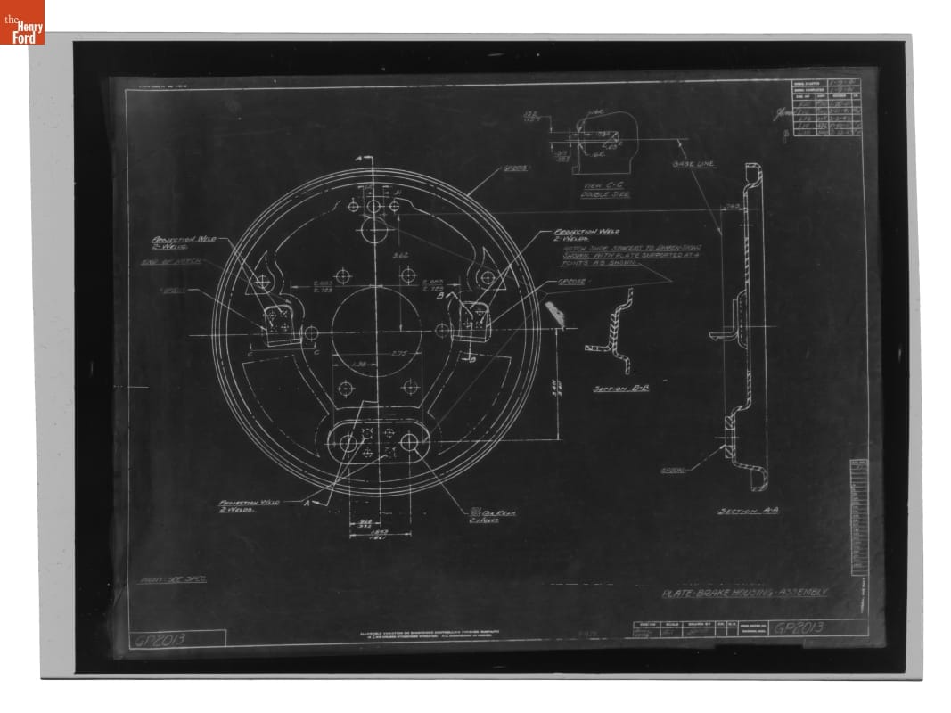 The Ford Motor Company created over a million parts drawings from 1903 to 1957. Many of these drawings specify engineering requirements for the components of Ford-made vehicles--including automobiles, trucks, tractors, military vehicles and Tri-motor airplanes. Others document assembly components, stages of casting and forging, or experimental designs. Beginning in the 1940s, Ford transferred the drawings to microfilm.