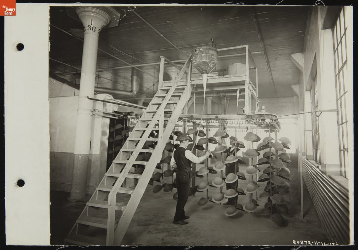Man Spray Painting Army Helmets, Ford Motor Company Philadelphia Plant, November 1917