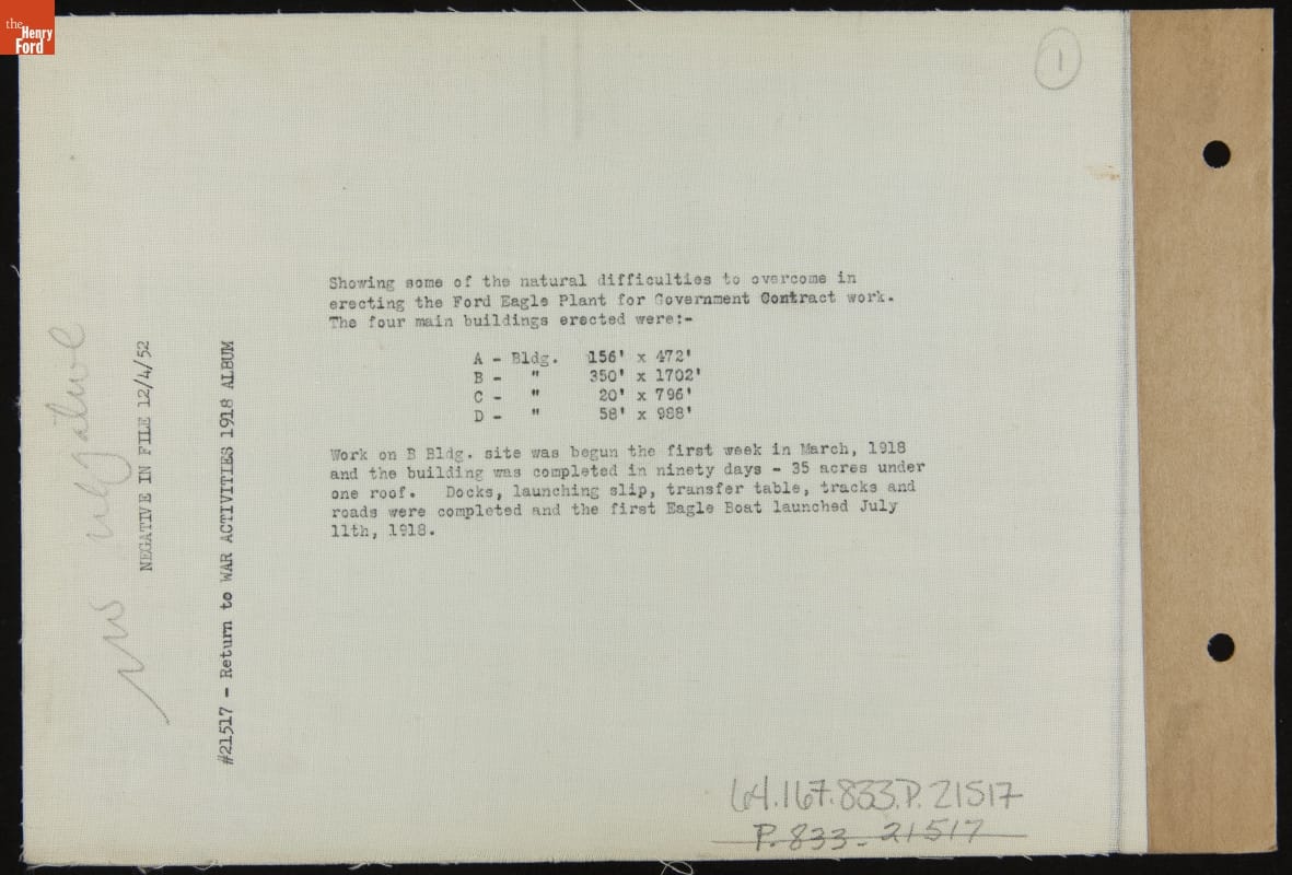 Construction of the Ford Eagle Boat Assembly Plant, April 1918