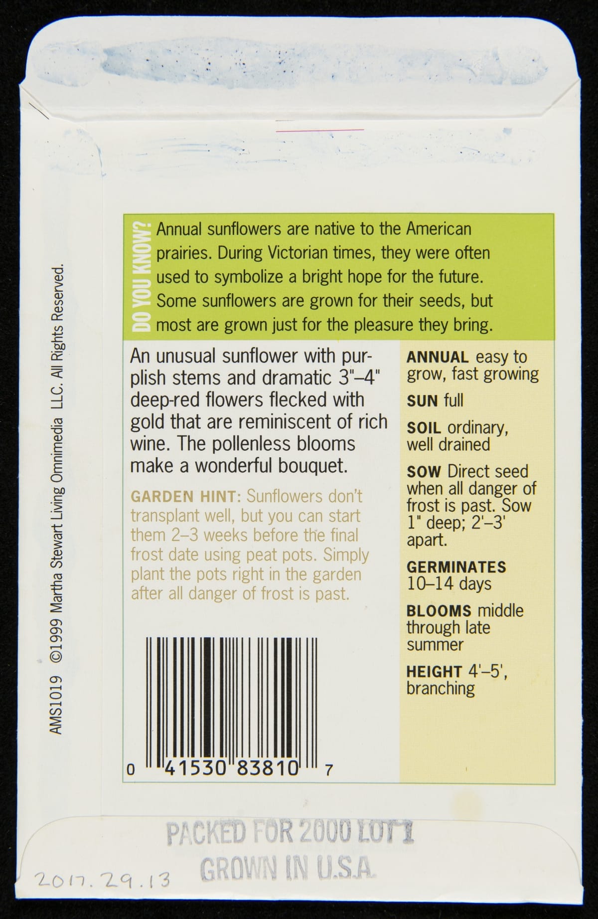 Martha Stewart "'Chianti' Hybrid Sunflower" Seed Packet, circa 2000