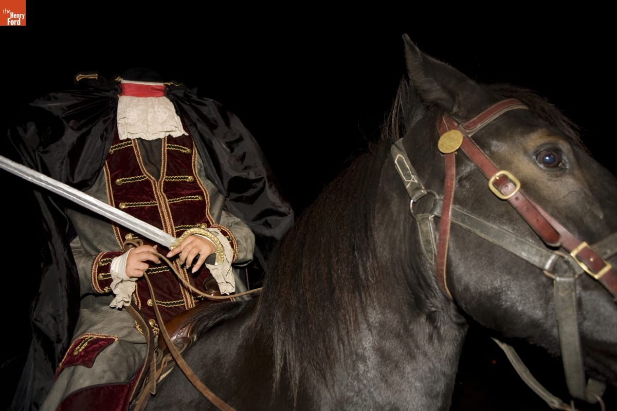 Visitors have celebrated Hallowe'en in Greenfield Village since 1981. The family-friendly program evolved over the years, and guests continue to return, ready to see hundreds of candle-lit pumpkins and their favorite fairytale or storybook characters. The Headless Horseman (a costumed staff member) made his first appearance in Greenfield Village in the late 1990s. He was still looking for Ichabod Crane in 2007.