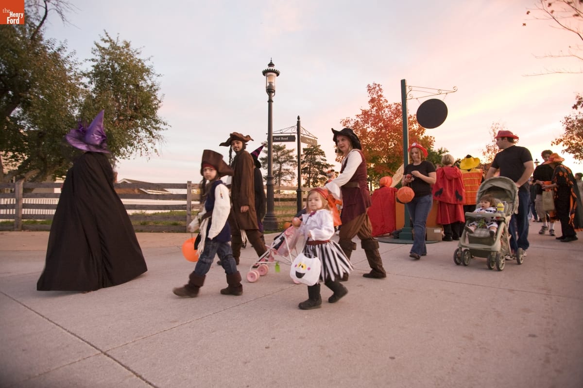 Visitors have celebrated Hallowe'en in Greenfield Village since 1981. The family-friendly program has evolved over the years, and guests continue to return each October, ready to see hundreds of candle-lit pumpkins or their favorite fairytale or storybook characters. Some guests -- especially our smaller ones -- dress up for the evening's revelry as they wander around Greenfield Village