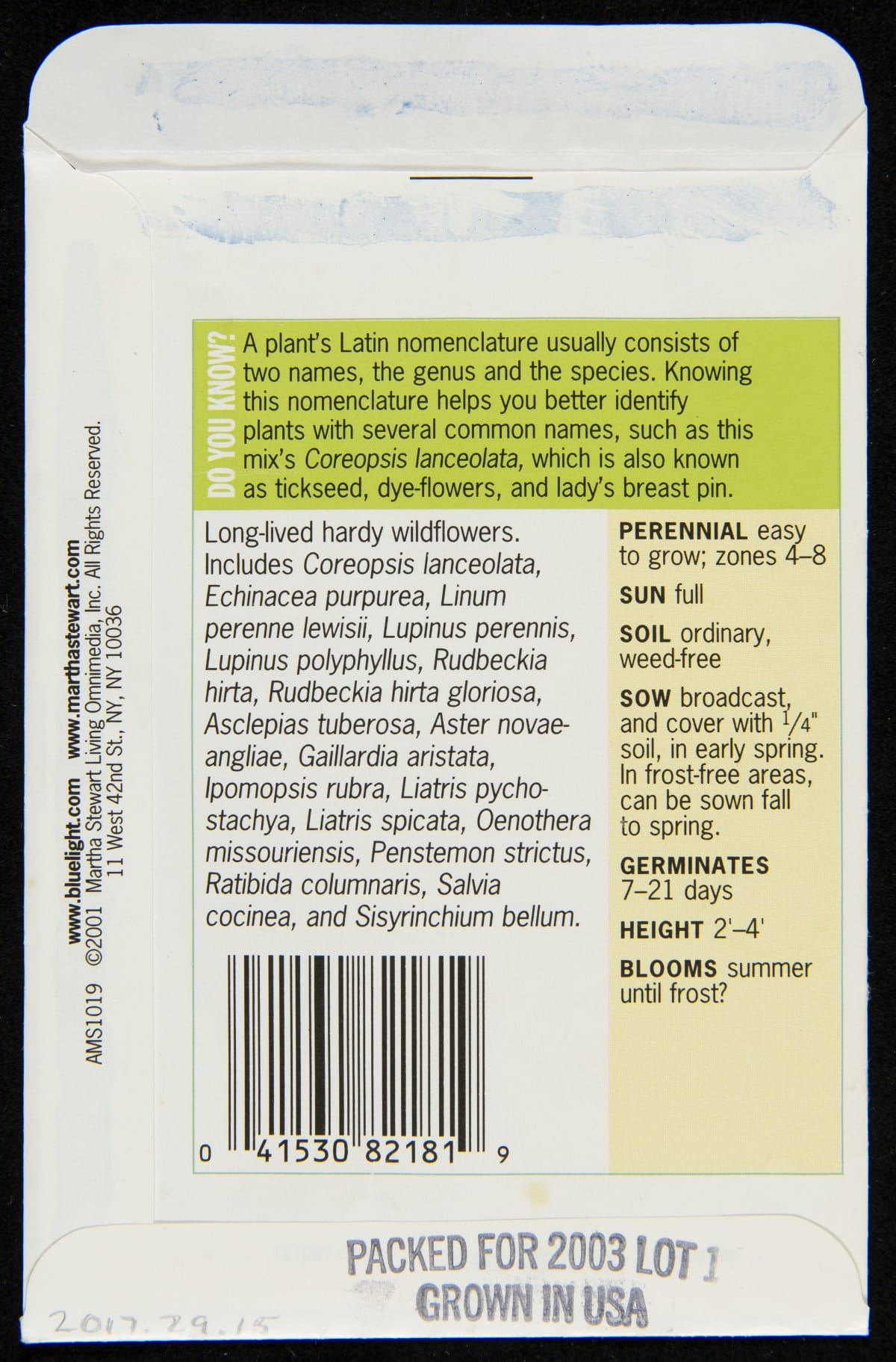 Martha Stewart "'North American Mix' Wildflowers" Seed Packet, circa 2003