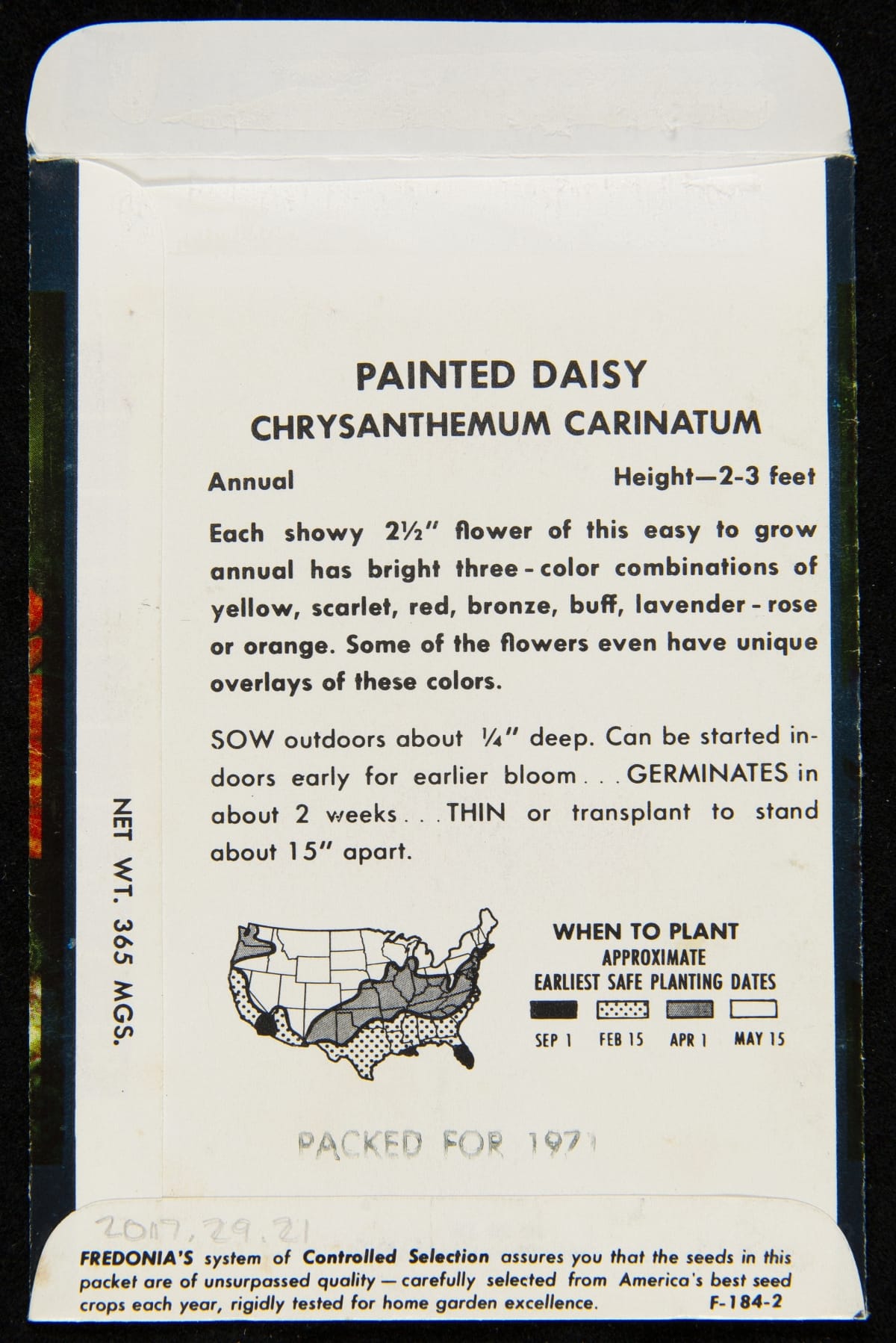 Fredonia Seed Company "Painted Daisy," Seed Packet, circa 1971