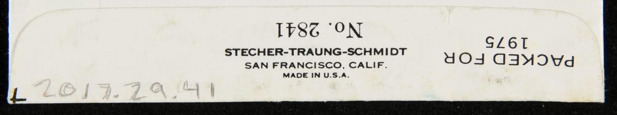 PACKED FOR 1975 / No. 2841 / STECHER-TRAUNG-SCHMIDT / SAN FRANCISCO, CALIF. MADE IN U.S.A.