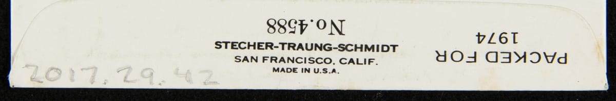 PACKED FOR 1974 / No. 4588 / STECHER-TRAUNG-SCHMIDT / SAN FRANCISCO, CALIF. MADE IN U.S.A.