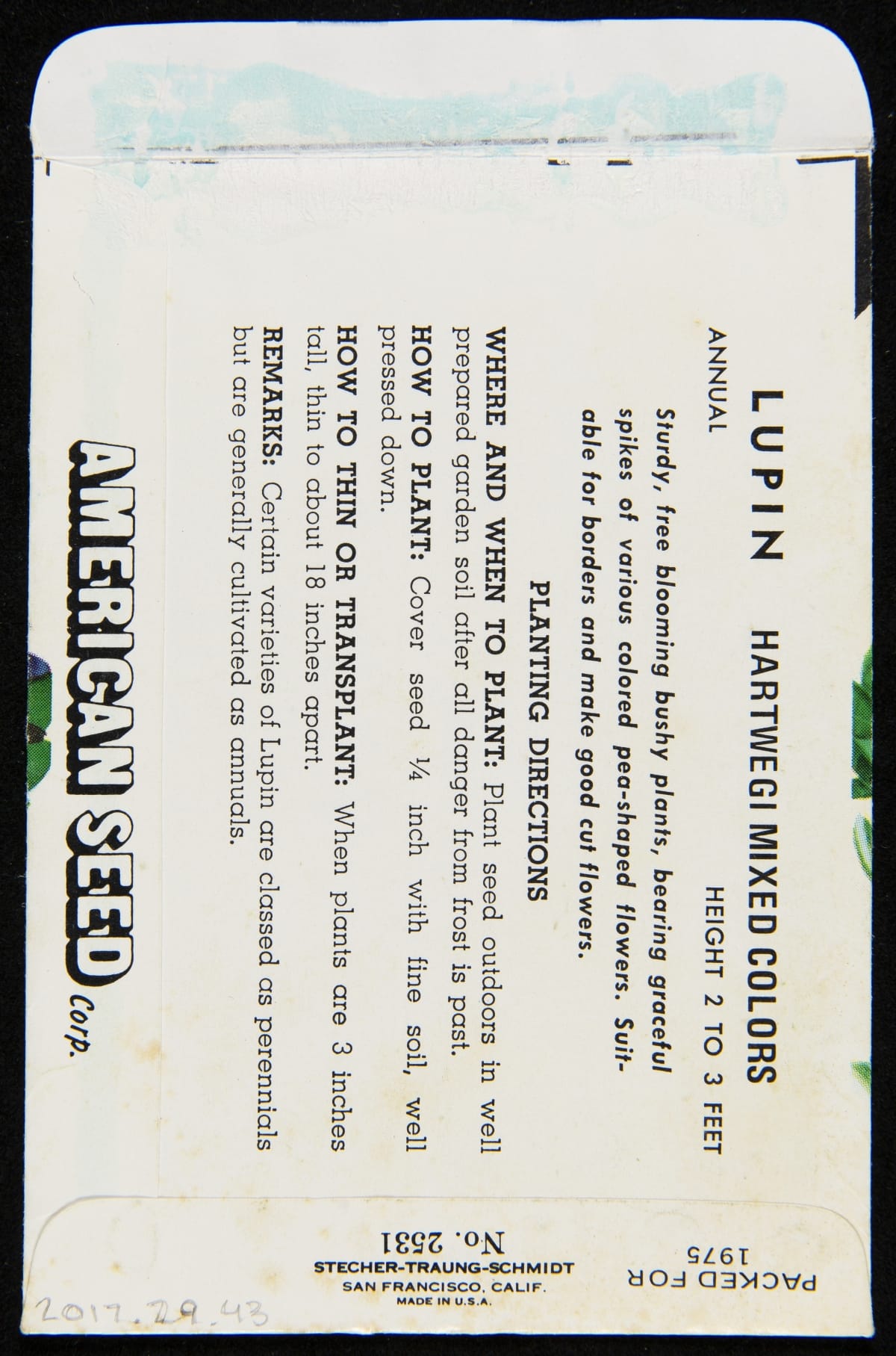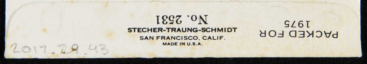 PACKED FOR 1975 / No. 2531 / STECHER-TRAUNG-SCHMIDT / SAN FRANCISCO, CALIF. MADE IN U.S.A.