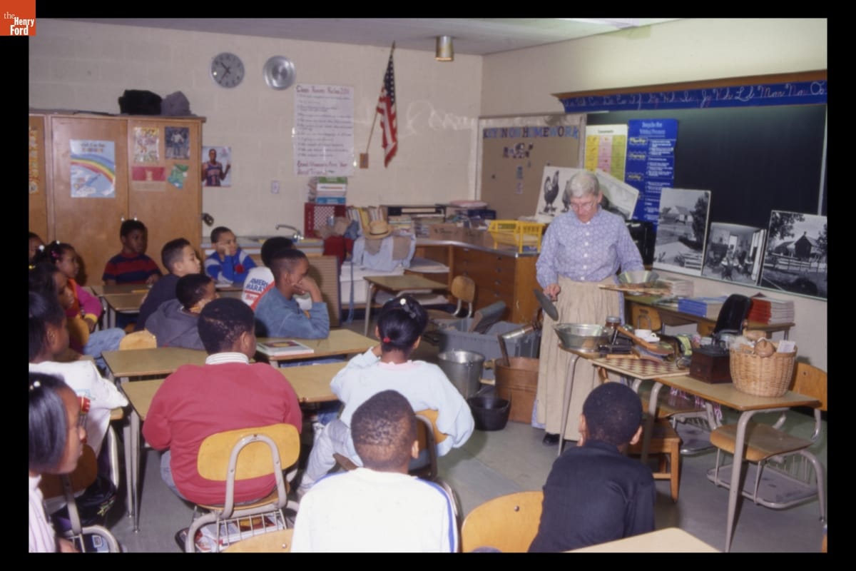 A "Time Traveler" from The Henry Ford Visits Woodward School, Detroit, Michigan, 1991