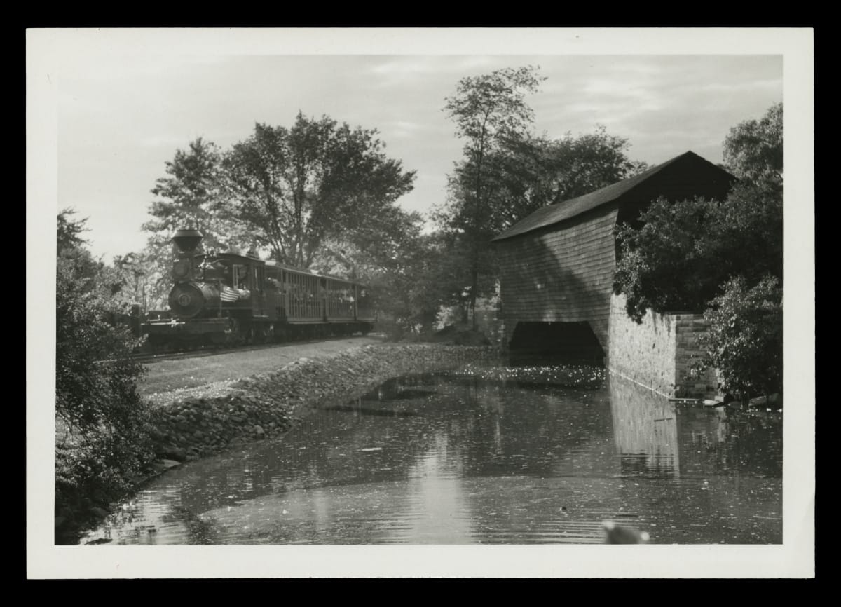 The Henry Ford's Weiser Railroad opened to the public in 1972. Its two-mile route took riders on a scenic loop around Greenfield Village. Authentic steam locomotives, maintained and operated by museum staff, pulled the open passenger cars. More than a simple excursion, the railroad's intermediate stations made it a practical transportation link around the village.