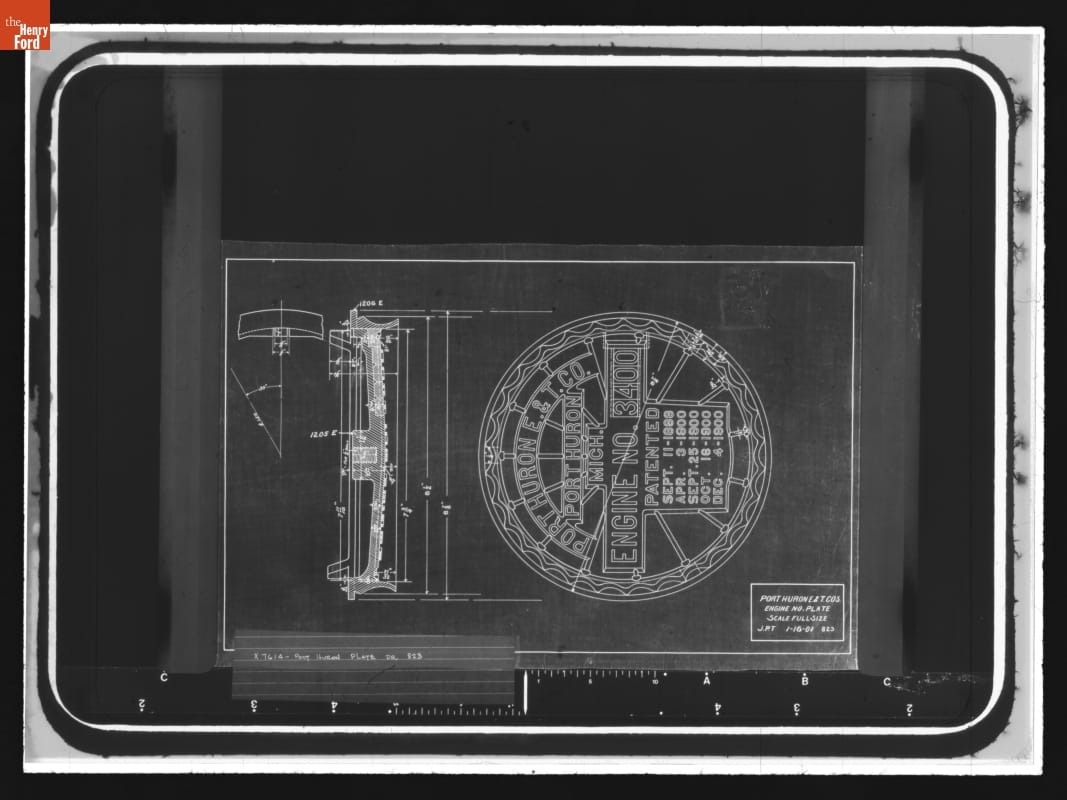 Port Huron Engine & Thresher Company Drawing, "Engine No. Plate," January 16, 1901