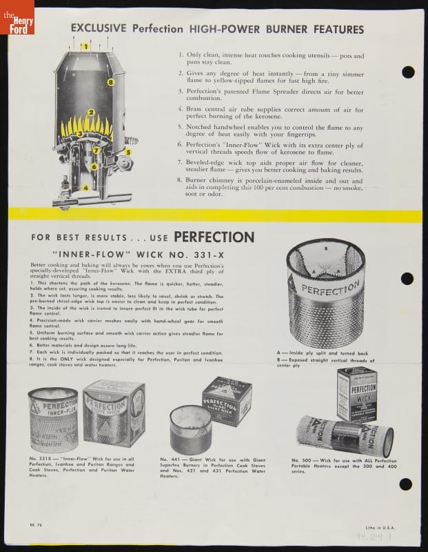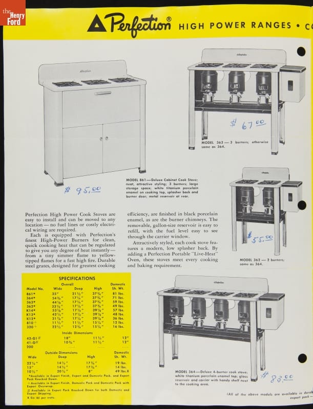 THF270557 / "Perfection Deluxe Oil Ranges," circa 1940 / front cover