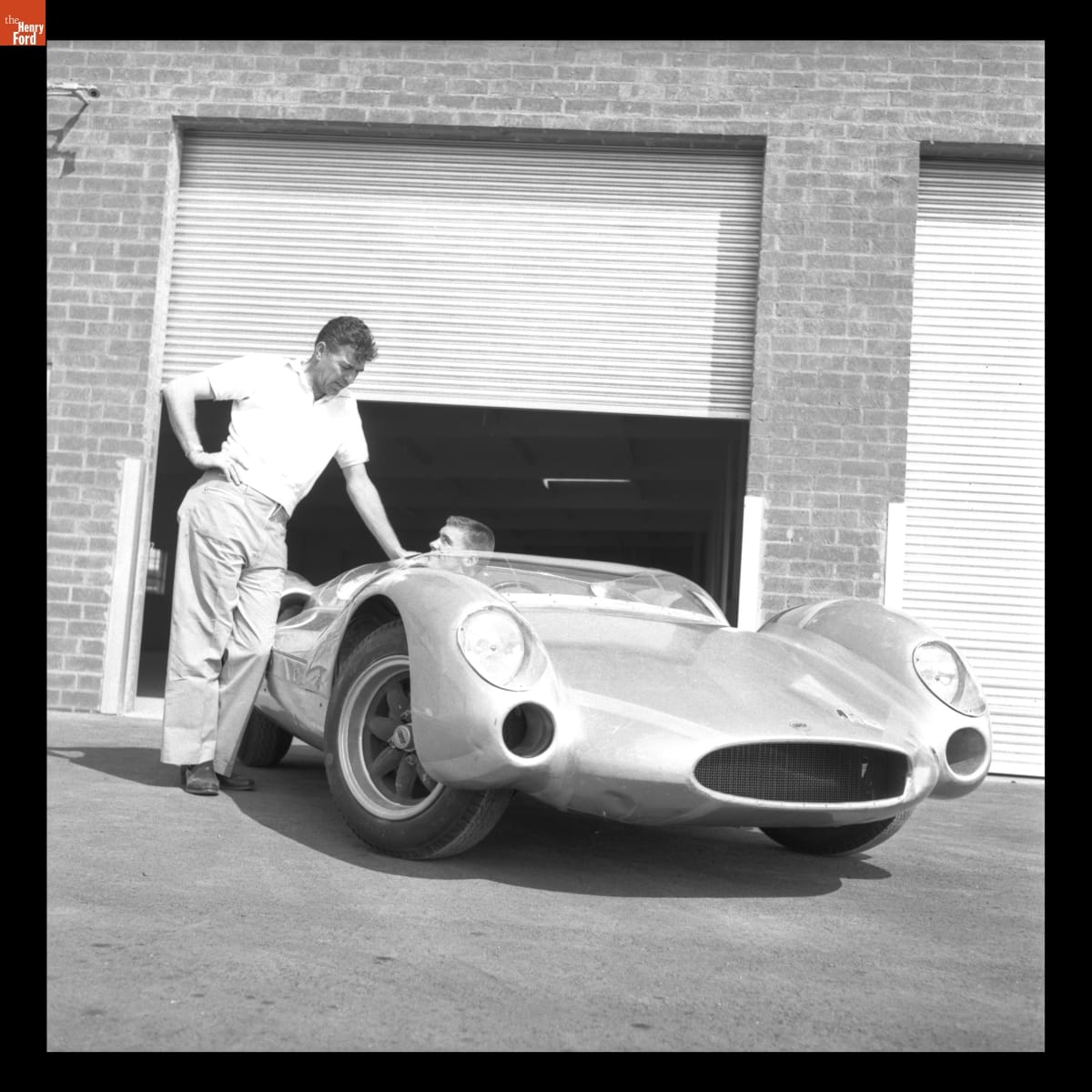 Dave MacDonald and Carroll Shelby with Shelby King Cobra CM/1/63, 1963