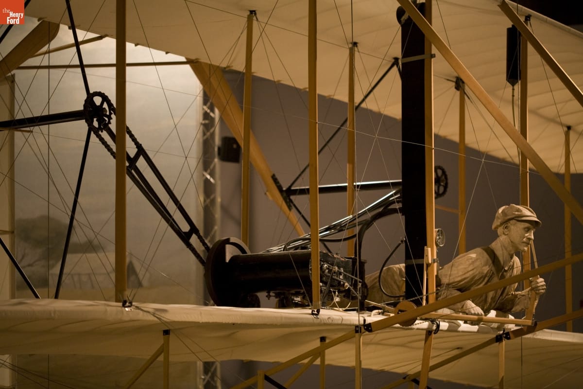 This replica of the 1903 Wright Flyer was built in 2003 to celebrate the centennial of the Wright brothers' first flight at Kill Devil Hills, North Carolina. The replica Flyer became the heart of the Heroes of the Sky exhibit in Henry Ford Museum of American Innovation, sitting in the central hub that connected each of the exhibit's sections.