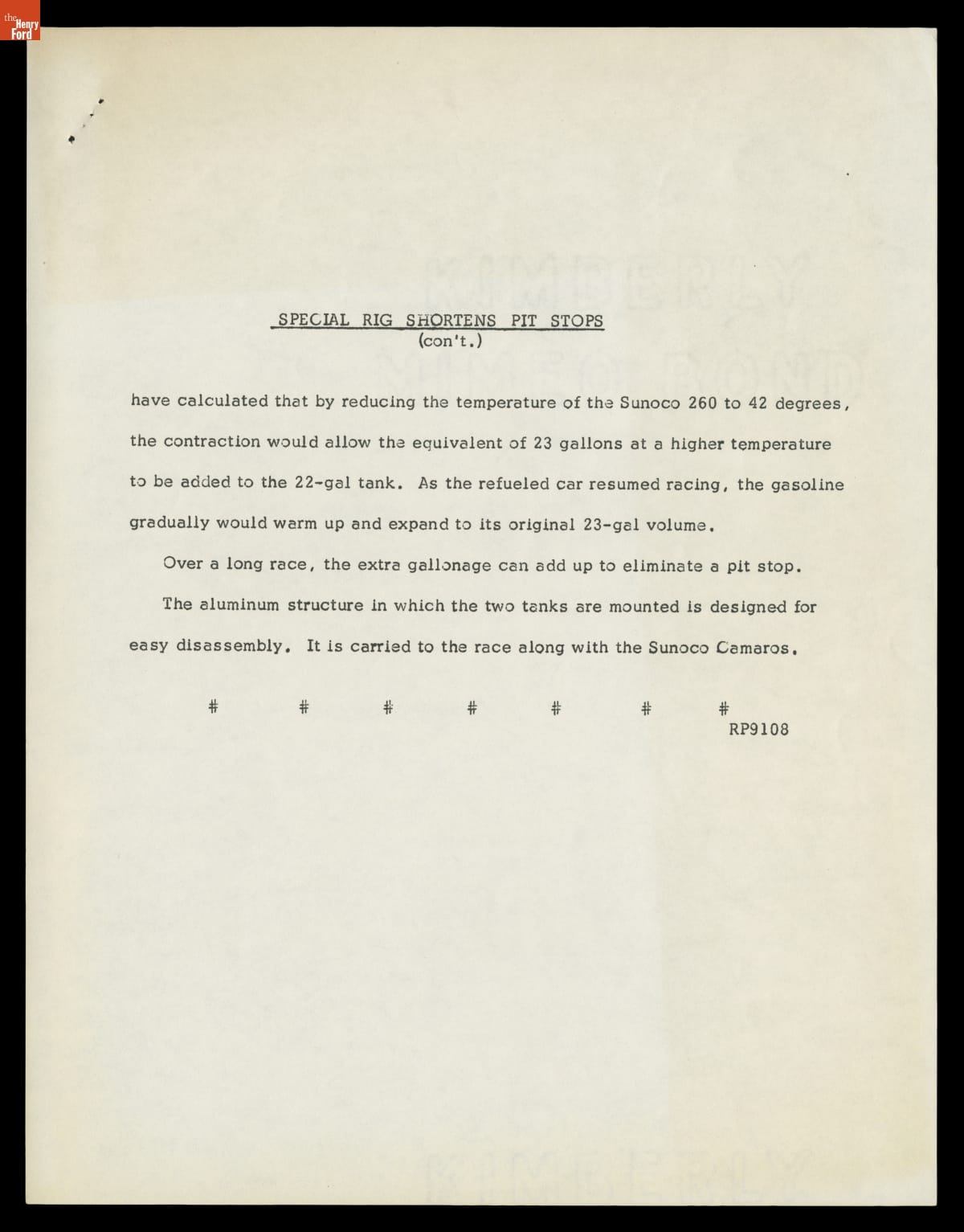 Press Release, "Special Rig Shortens Pit Stops," 1969