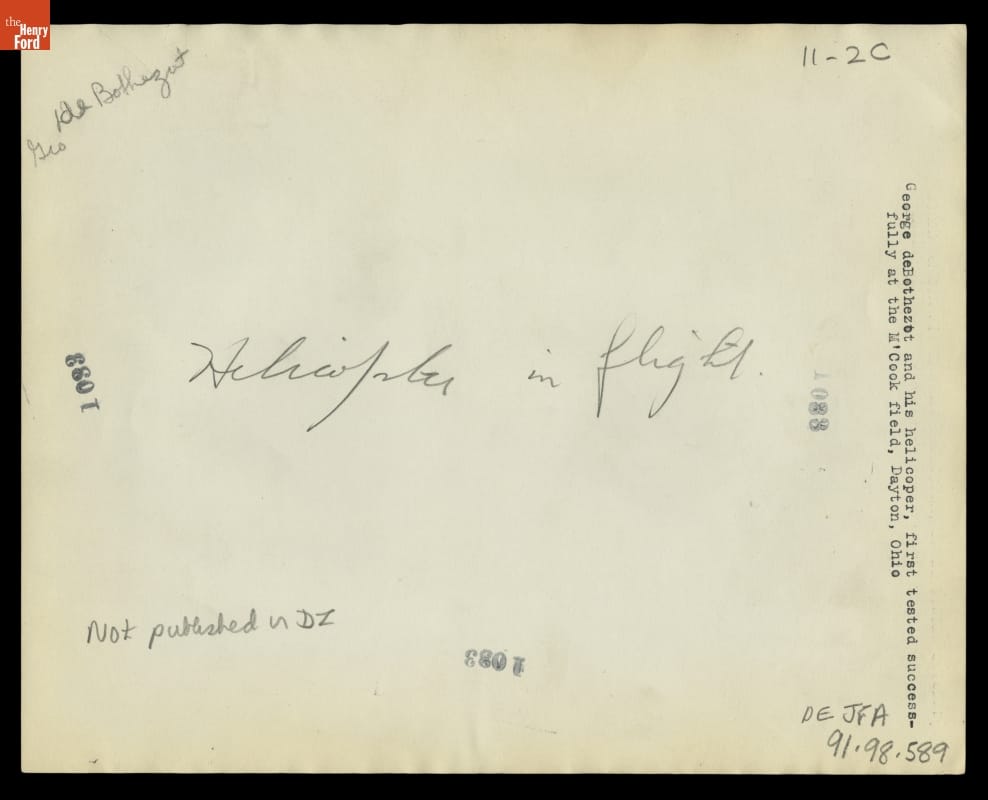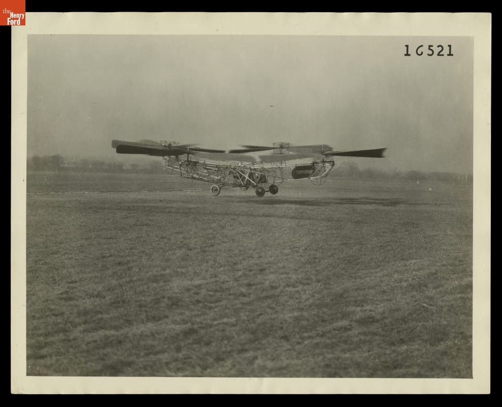 Georges de Bothezat in His Helicopter at McCook Field, Dayton, Ohio, 1923-1924