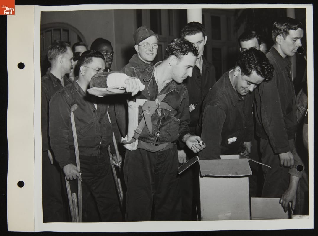 Patients at Percy Jones Hospital Opening Packages on Ford Legion Day, Battle Creek, Michigan, April 1944