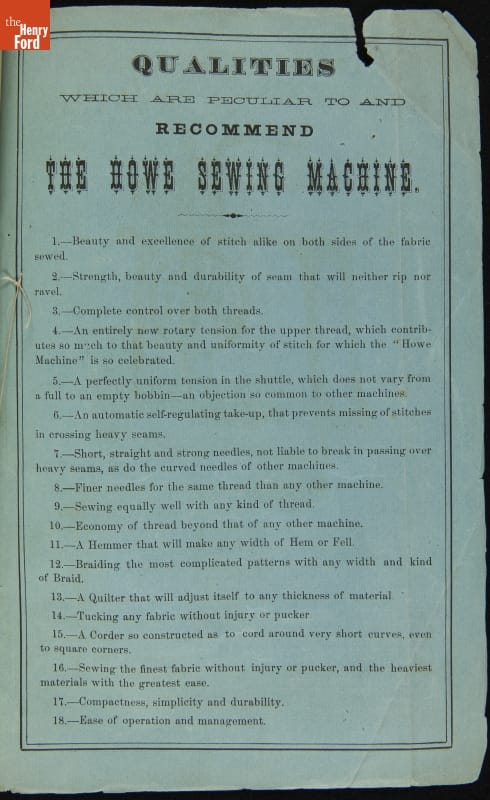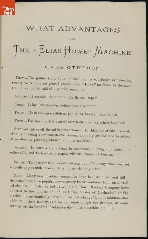 "History of the Sewing Machine" and "What Advantages Has the Elias Howe Machine Over Others?," May 1867