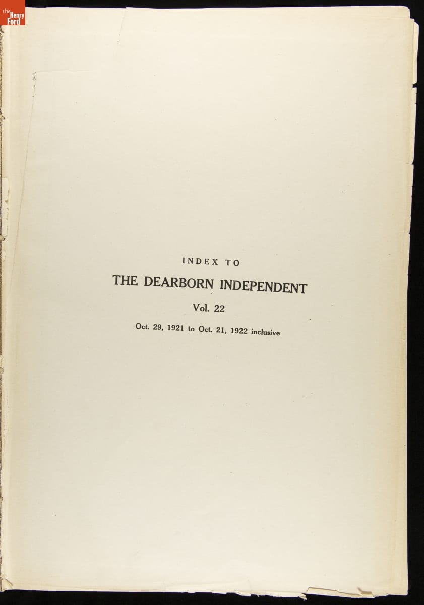 Henry Ford purchased The Dearborn Independent and published it under his name from 1919 to 1927. It served as a forum for Ford's views, free from other media outlets that had attacked his work and values and were outside his control. The Dearborn Independent covered world events, business and economic news, and fiction from noted authors. Sadly, it also served as an outlet for Ford's anti-Semitic sentiments. Between 1920 and 1922, the weekly paper ran a series of front-page articles that denounced all things Jewish. Even after this series, many articles contained anti-Jewish language. Though Ford later apologized and printed a retraction, these notoriously anti-Semitic editorials and articles forever tarnished the influential automaker's reputation.