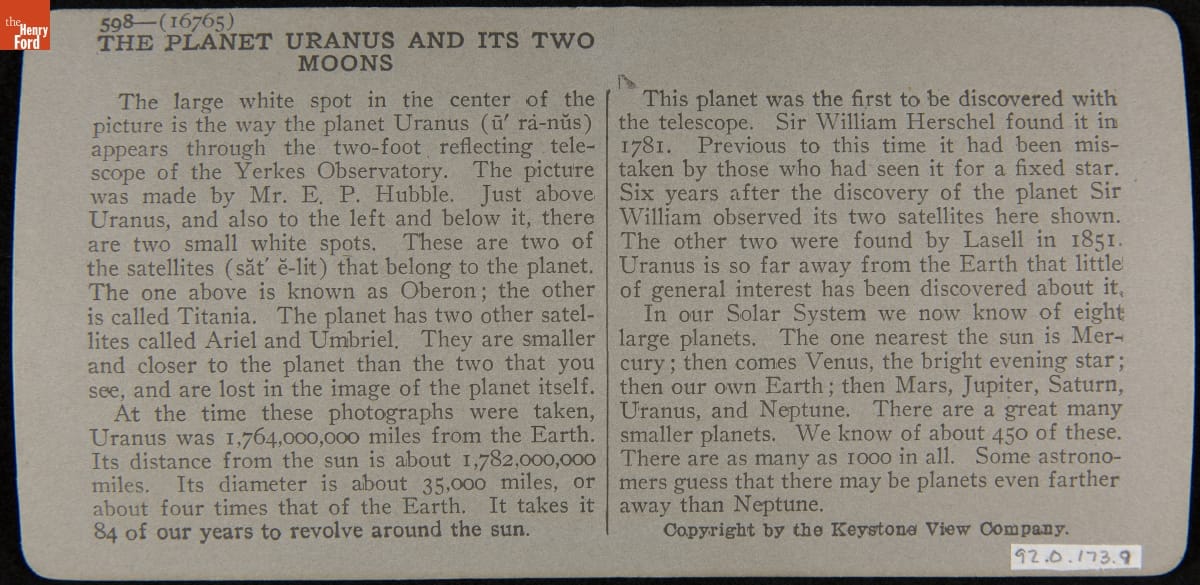 Stereograph, "The Planet Uranus and Two of Its Moons," 1916