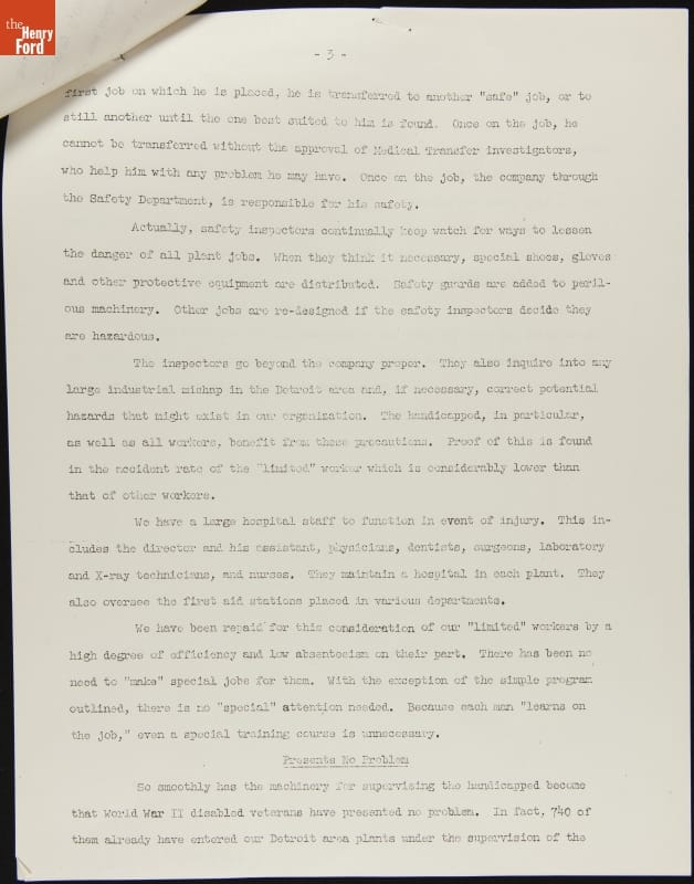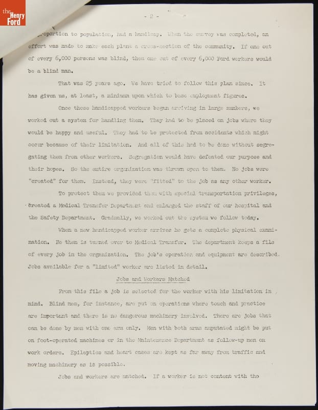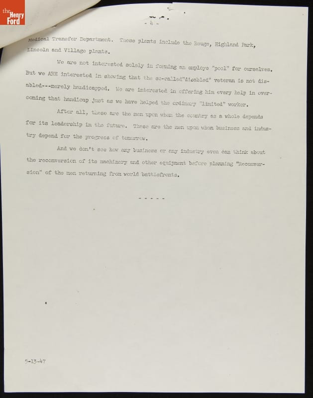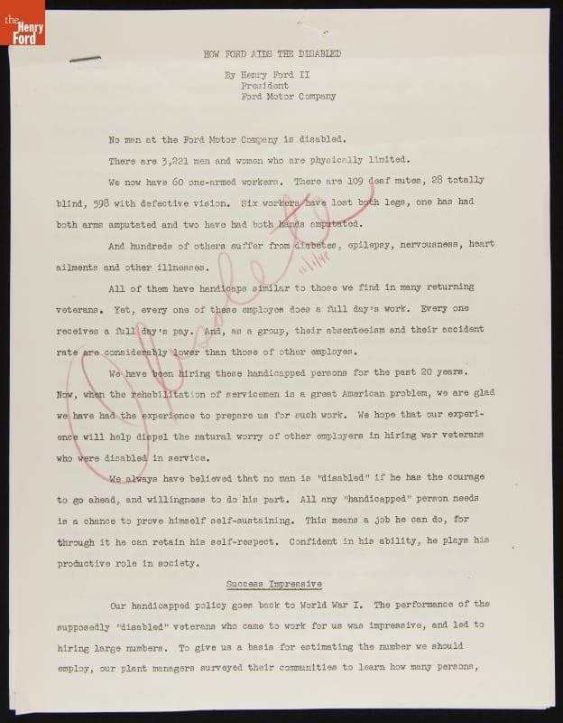 "How Ford Aids the Disabled," Ford Press Release, May 13, 1947