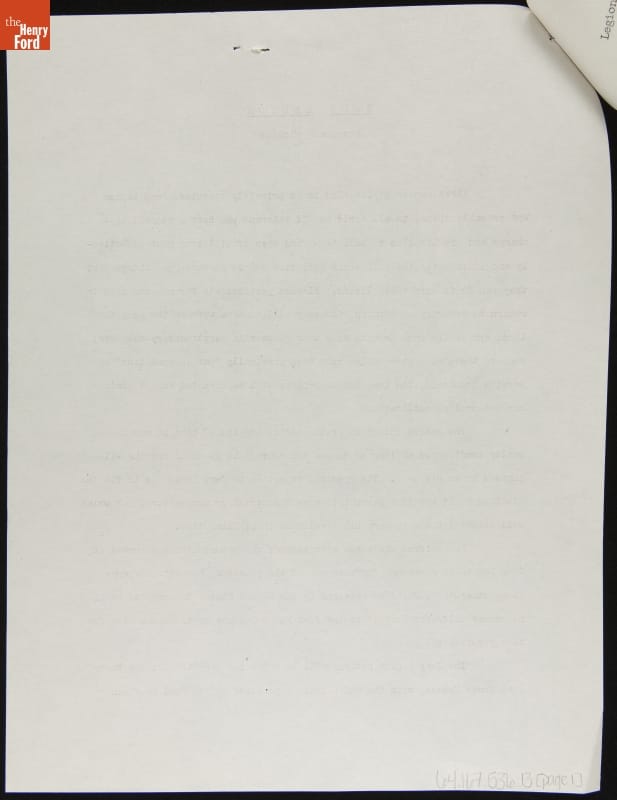 Camp Legion Opened to Give Occupational Rehabilitation to Disabled Veterans, Ford Press Release, 1944